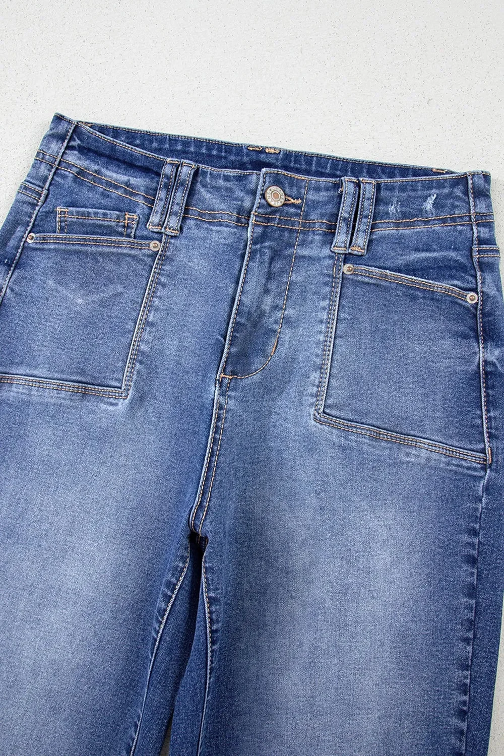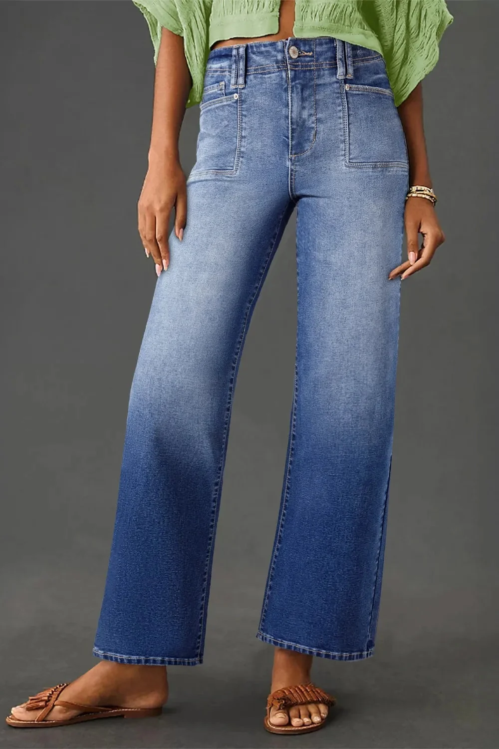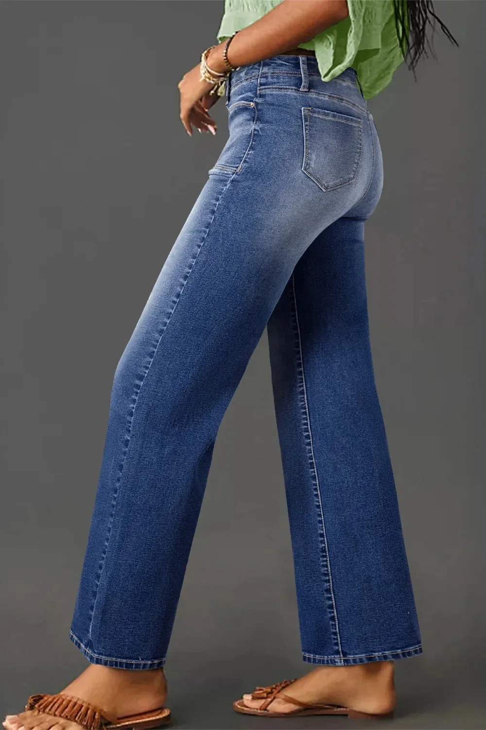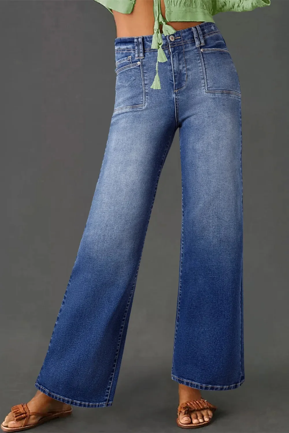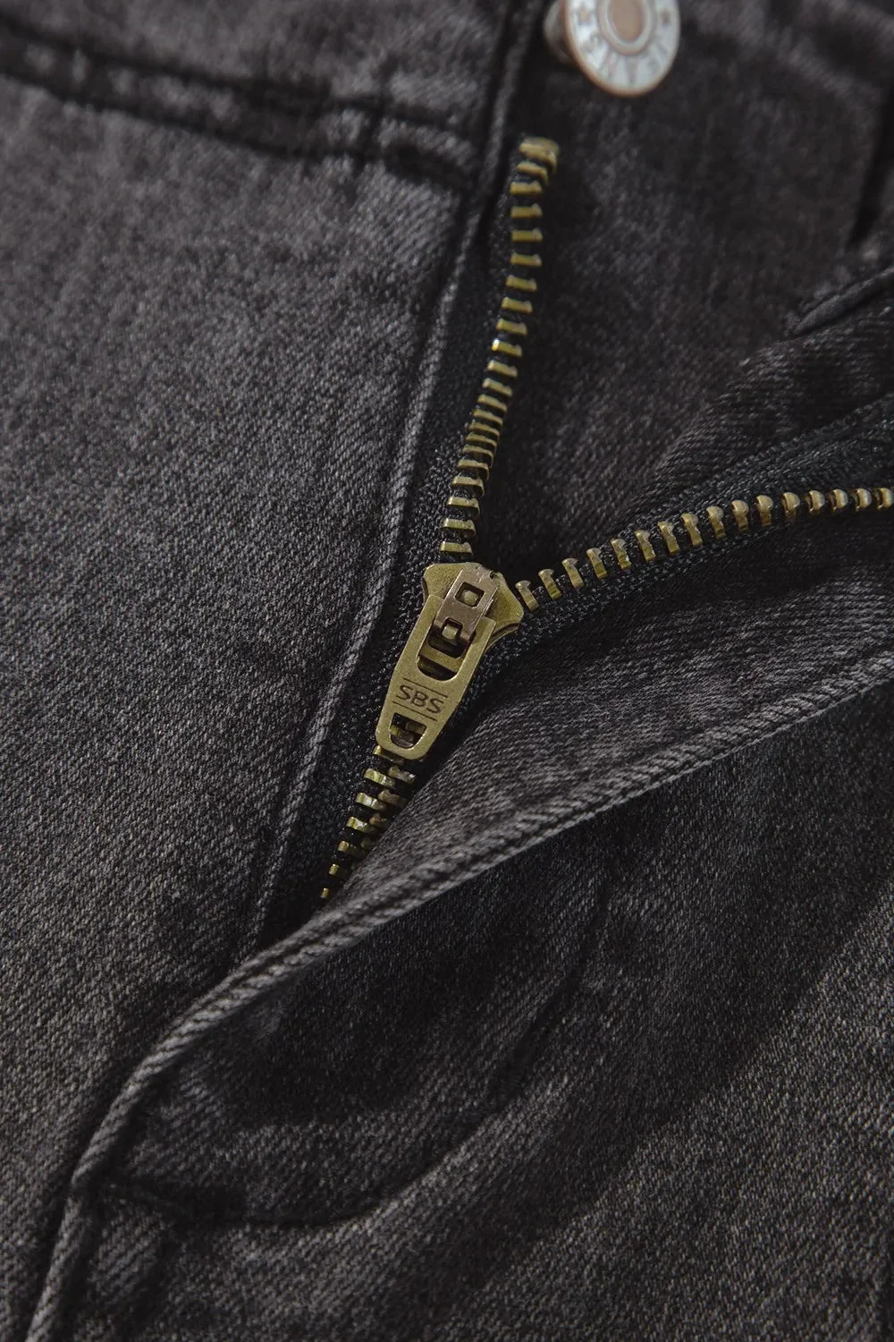 Upgrade your wardrobe with our wide-leg vintage wash jeans in dark gray, dusty blue, and black. Featuring pockets and a flattering high-waist design. Crafted with 65% polyester, 33% cotton, and 2% elastane for comfort and style. Machine wash cold and tumble dry low for easy care. Available in various sizes from 4 to 14.