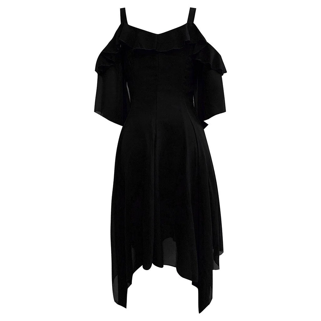 Elevate your mystical allure with our Witch Style Button-Front Midi Dress. Designed with gossamer light bat-wing sleeves, an off-the-shoulder style, and ruffled neckline for a bewitching silhouette. Crafted from a delicate blend of chiffon, polyester, and cotton, this dress exudes witchy sexiness. Available in multiple sizes to 5XL to suit all body types.