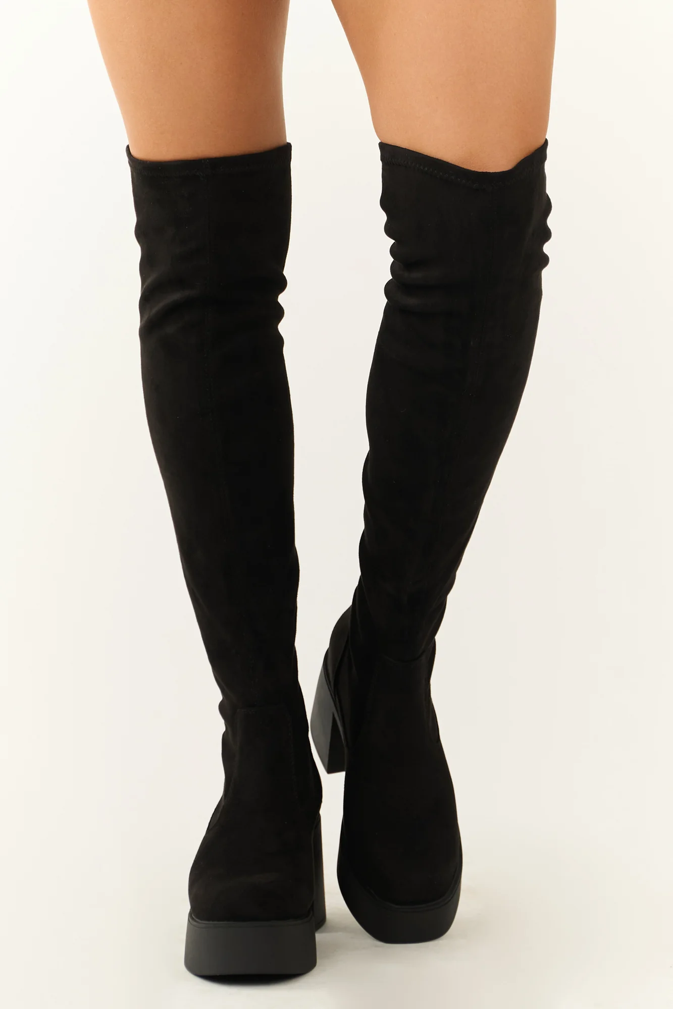 Step up your style with these chic knee-high boots. Crafted from faux suede, they feature a 3.5-inch heel and a 1.5-inch platform for added height. The pull-on design and round closed toe ensure both comfort and fashion-forward look. With a shaft height of 23 inches and a 16-inch circumference, these imported boots are perfect for any occasion. Elevate your wardrobe with these versatile black boots!