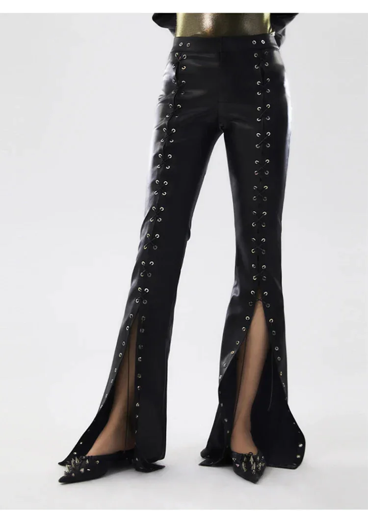 Discover our exclusive Womens Black Faux Leather Flare Pants, a unique head-turner in fashion. Crafted from a premium faux leather and cotton blend for superior quality. Enhance your style with these elegant Womens Black Faux Leather Flare Pants, available in sizes S to 3XL. Explore our detailed sizing chart for the perfect fit in centimeters and inches. For a delightful shopping experience, contact In The End Cult for any assistance.