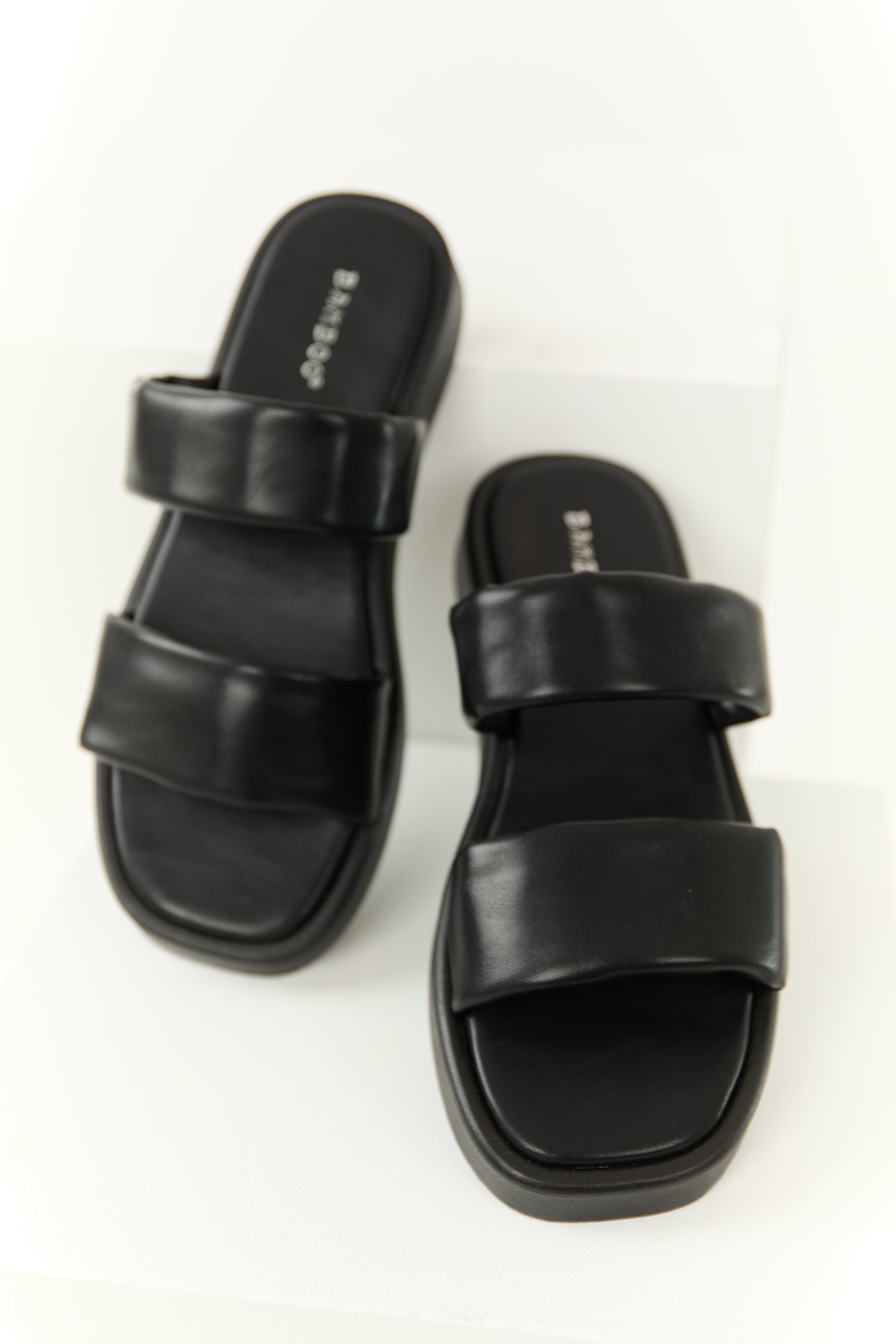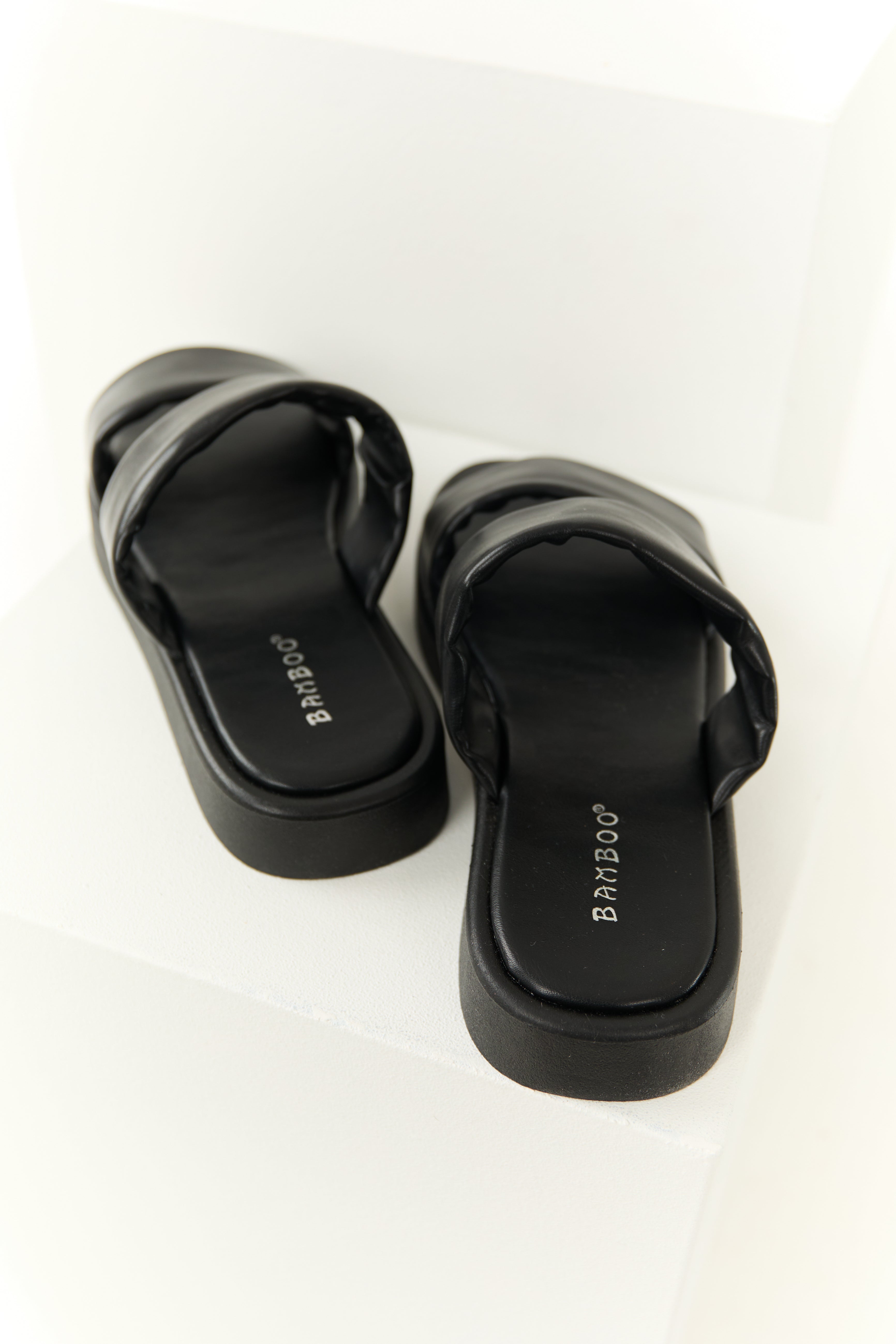 Step out in style with these fashionable Womens Black Open Toe Flat Sandals. Crafted from durable faux leather, these slip-on sandals feature a slightly cushioned insole for all-day comfort. The 1″ heel adds a touch of elegance, making them perfect for casual daytime outings during the summer season. Imported product measured on size 8 for accurate fit.
