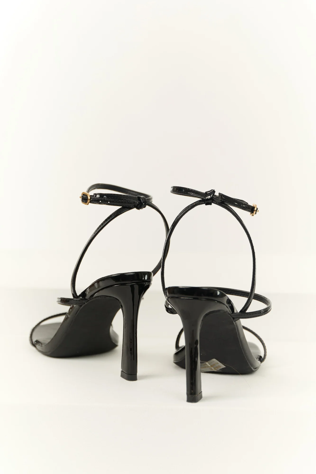 Step into elegance with these womens black stiletto heel pumps in patent faux leather design. Featuring a square toe, open toe, gold ankle buckle detail, adjustable ankle strap, 4-inch heel height, 3.5-inch shaft, and imported craftsmanship. Perfect for date nights and going out, these heels offer style and comfort in every step. Available in sizes 5.5 to 10, with adjustable circumference for the perfect fit. Elevate your look with these sophisticated stiletto heels .