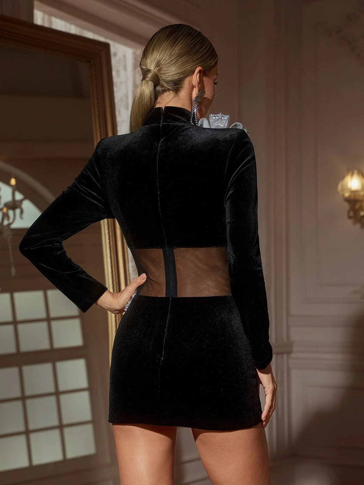 Indulge in luxury and sophistication with our Womens Black Velvet Floral Mini Dress. This stunning dress features a feminine flower pattern and elegant long sleeves, making it the ideal choice for any special event. Elevate your style and command attention effortlessly wherever you go. Crafted from 100% Polyester with a slight stretch for comfort, this dress boasts an invisible zipper closure at the back. Dry clean only for best care results. Please note that the color may appear slightly different due to lighting variations in images. Available in sizes S and M. Look and feel exquisite with this exquisite cocktail dress, perfect for parties, celebrations, and more.