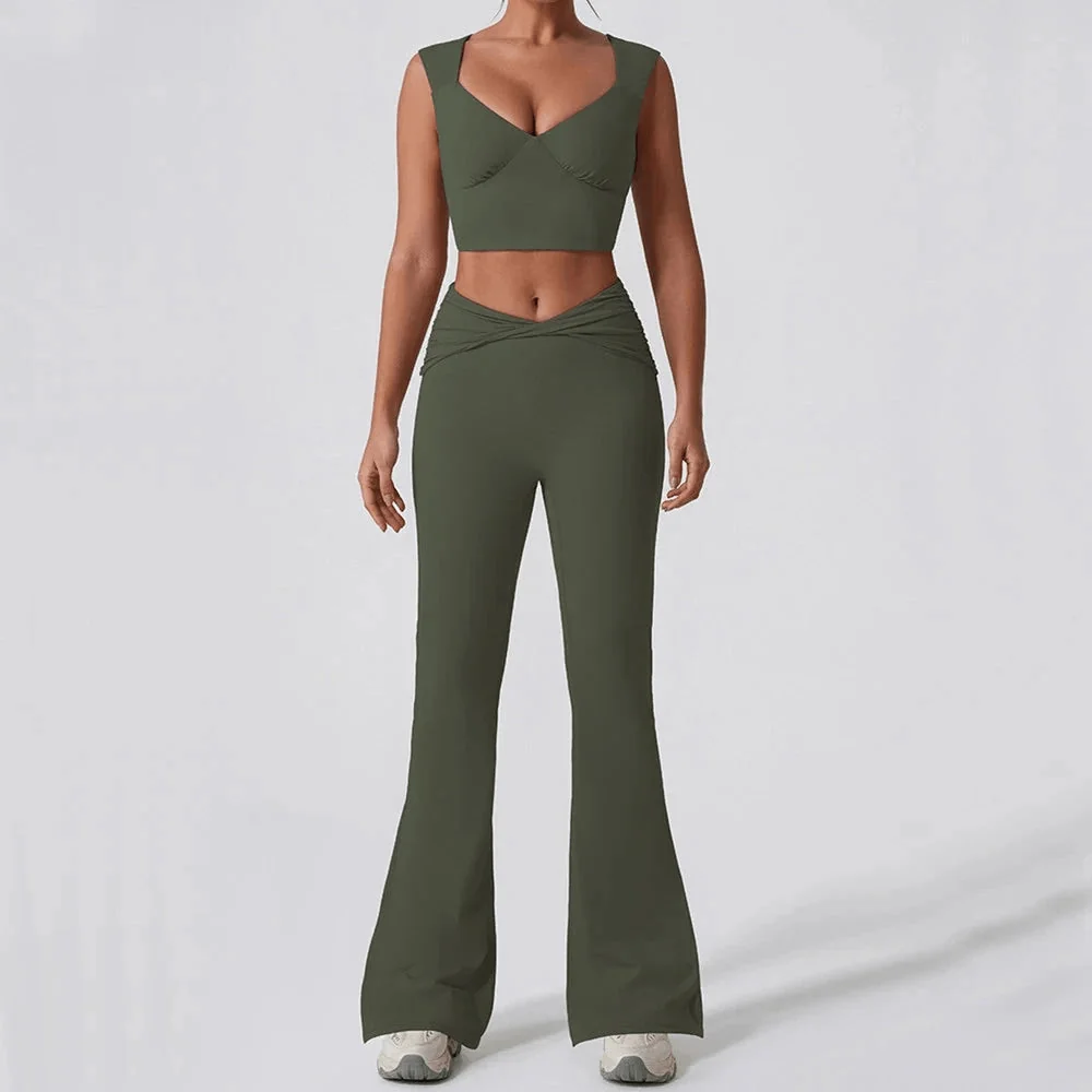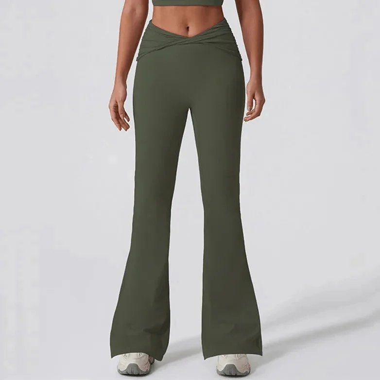Experience unmatched comfort and style with our womens fitness leggings collection featuring the Thrive Flare Pants. Perfect for daily wear, workouts, yoga, and gym sessions, these leggings are designed to empower and energize your fitness journey. Made of 75% Nylon and 25% Spandex to ensure flexibility and comfort. Achieve your fitness goals with our high-quality, body-flattering fitness leggings. Choose from a variety of colors including Army Green, Sky Blue, Brown, Beige, Black, and Khaki. Discover the perfect match today and enjoy a 100% money-back guarantee plus secure worldwide shipping.