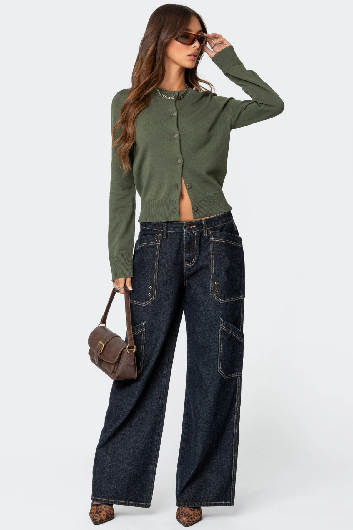 This Womens Olive Knitted Cardigan features a button-up front closure for easy wear. Made of 100% Cotton, this cardigan is a versatile addition to your wardrobe. The model is wearing size S and is 59 tall. Machine wash at a maximum of 30ºC for easy care. Add this cozy yet stylish cardigan to your collection today!