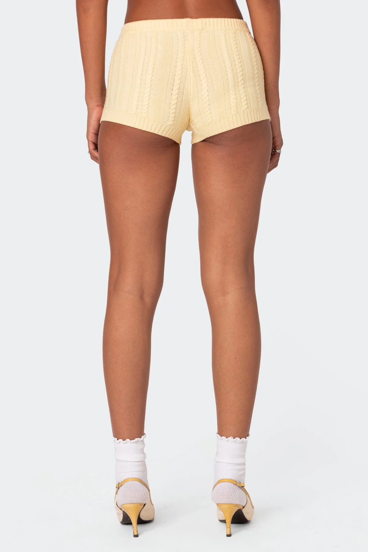 Upgrade your wardrobe with our cozy Yellow Cable Knit Shorts made of high-quality acrylic fabric for supreme comfort. These versatile shorts feature a charming cable knit design and come in sizes XS to 5XL. Perfect for daily wear or lounging at home. Care Instructions: Machine wash at a maximum of 30ºC, do not bleach, do not tumble dry, iron at a maximum of 110ºC.