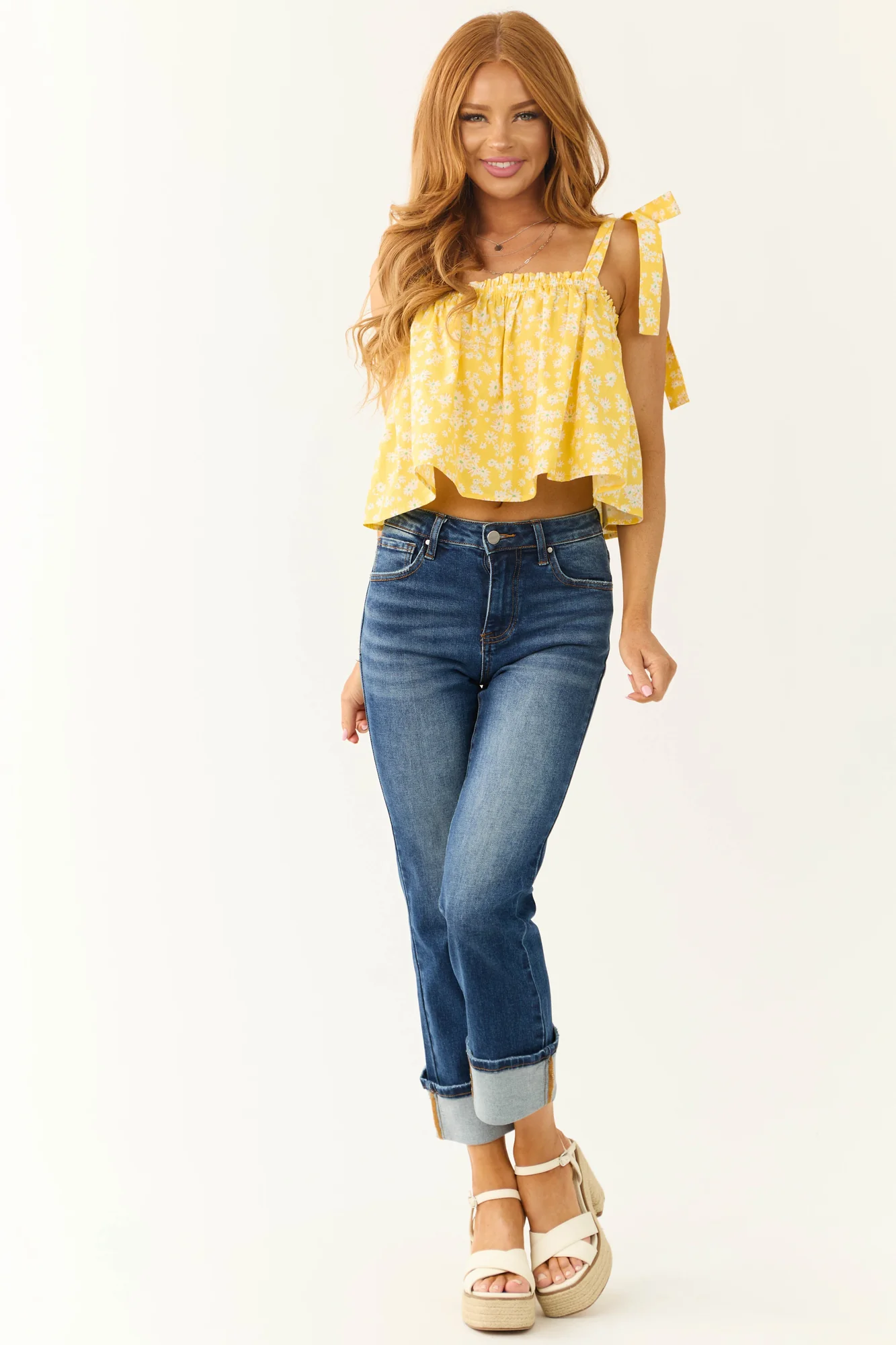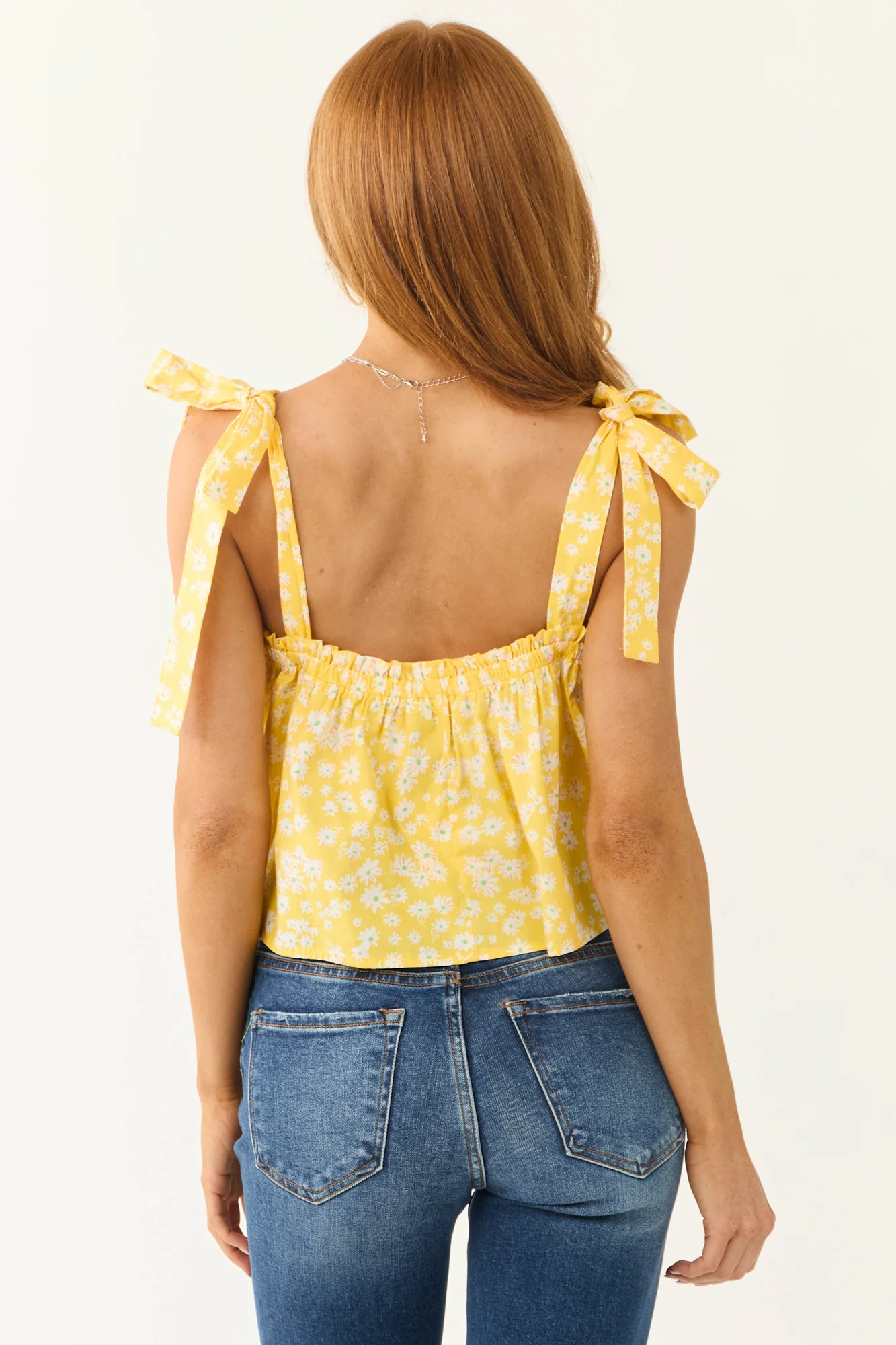 Embrace the vibrant beauty of spring with our Canary Yellow Floral Print Sleeveless Tank Top. Crafted from 100% Cotton, this flowy piece features a square neckline, self-tied straps, and a cropped length for a chic flair. The top comes in shades of Canary Yellow, Juniper, Carnation, and White, making it a versatile addition to your casual daytime wardrobe. Whether you pair it with jeans or shorts, this top will elevate your look effortlessly. Hand wash cold to maintain the colors. Available in sizes S, M, and L.