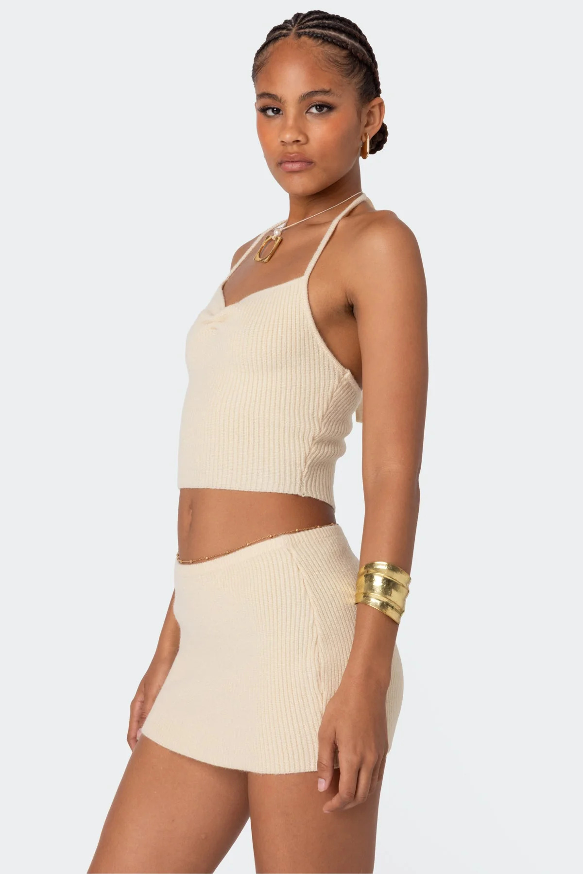 Indulge in comfort and style with our Yellow Knit Halter Top Set. Featuring a halter neck tie and cinched center for a flattering fit. This set includes a soft knit fabric top and matching bottoms. Crafted from Nylon and Polyester blend for durability and comfort. Perfect for various occasions, and easy to care for with hand washing. Available in sizes XS to XL.