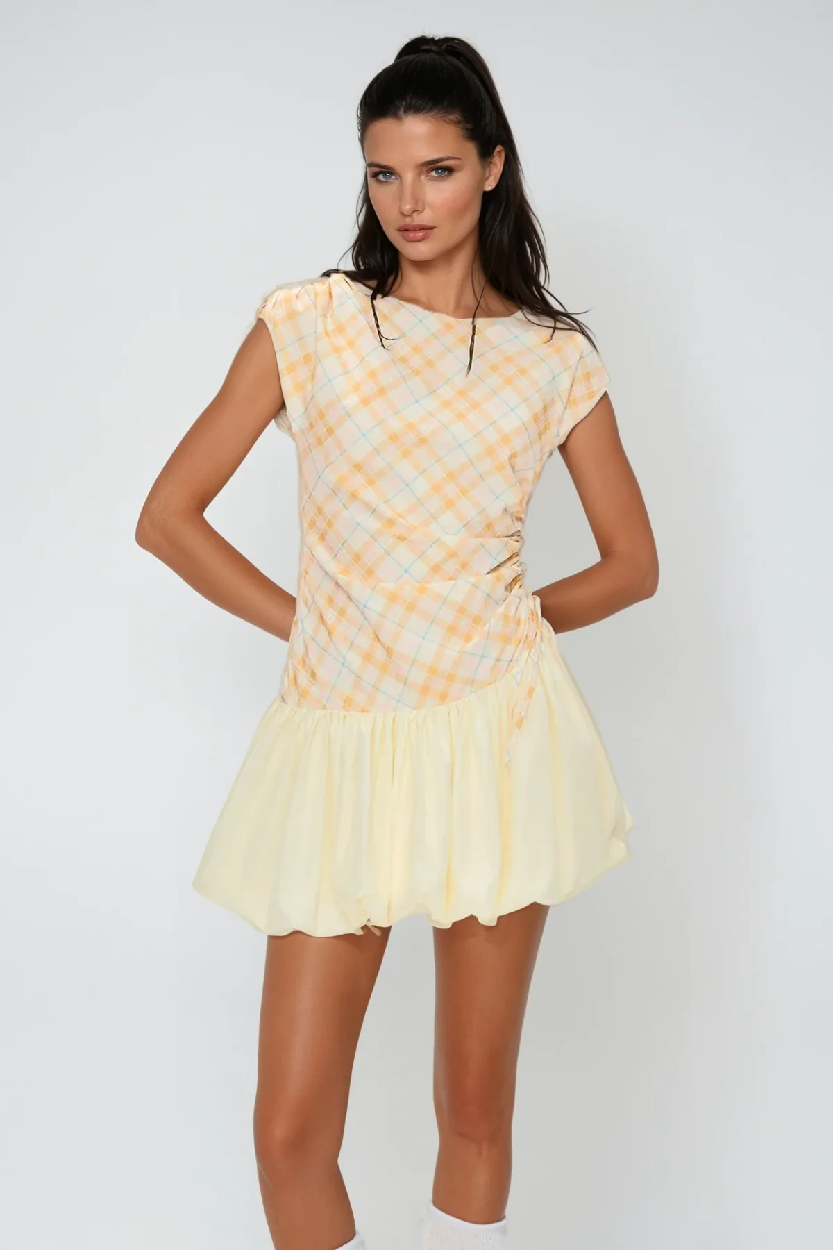 Elevate your wardrobe effortlessly with our Yellow Plaid Mini Dress featuring a charming sweetheart neckline. Crafted from premium plaid fabric, this dress exudes elegance and comfort. Embrace its mini length and timeless plaid design suitable for various occasions. Made of 50% Polyester and 50% Cotton for durability and style. Experience the perfect combination of style and grace in this piece. Color variations may occur due to lighting in images. Gentle machine wash for easy care.