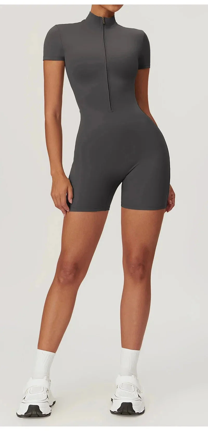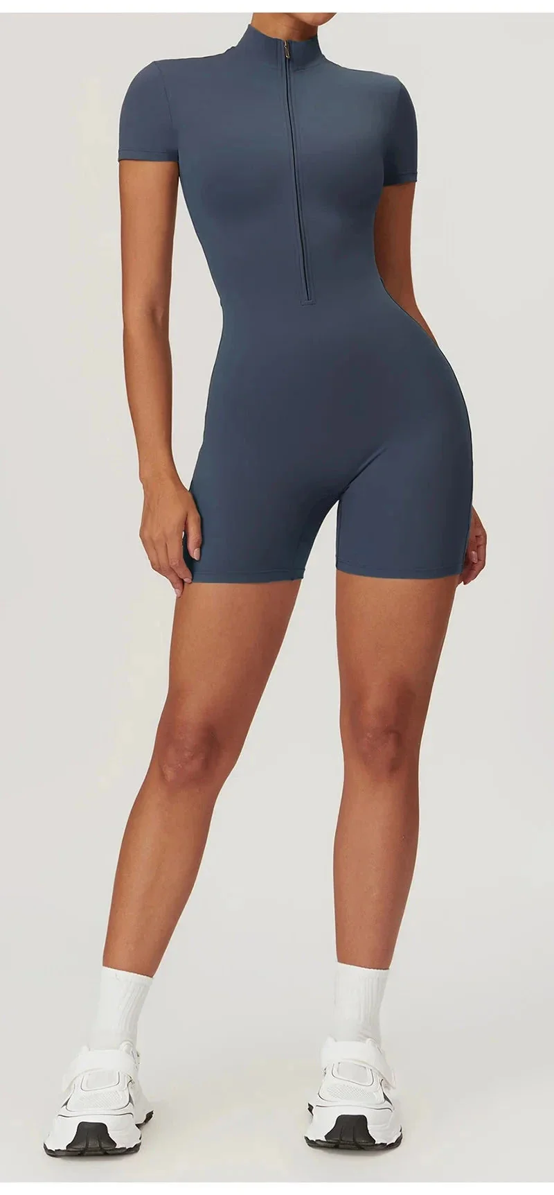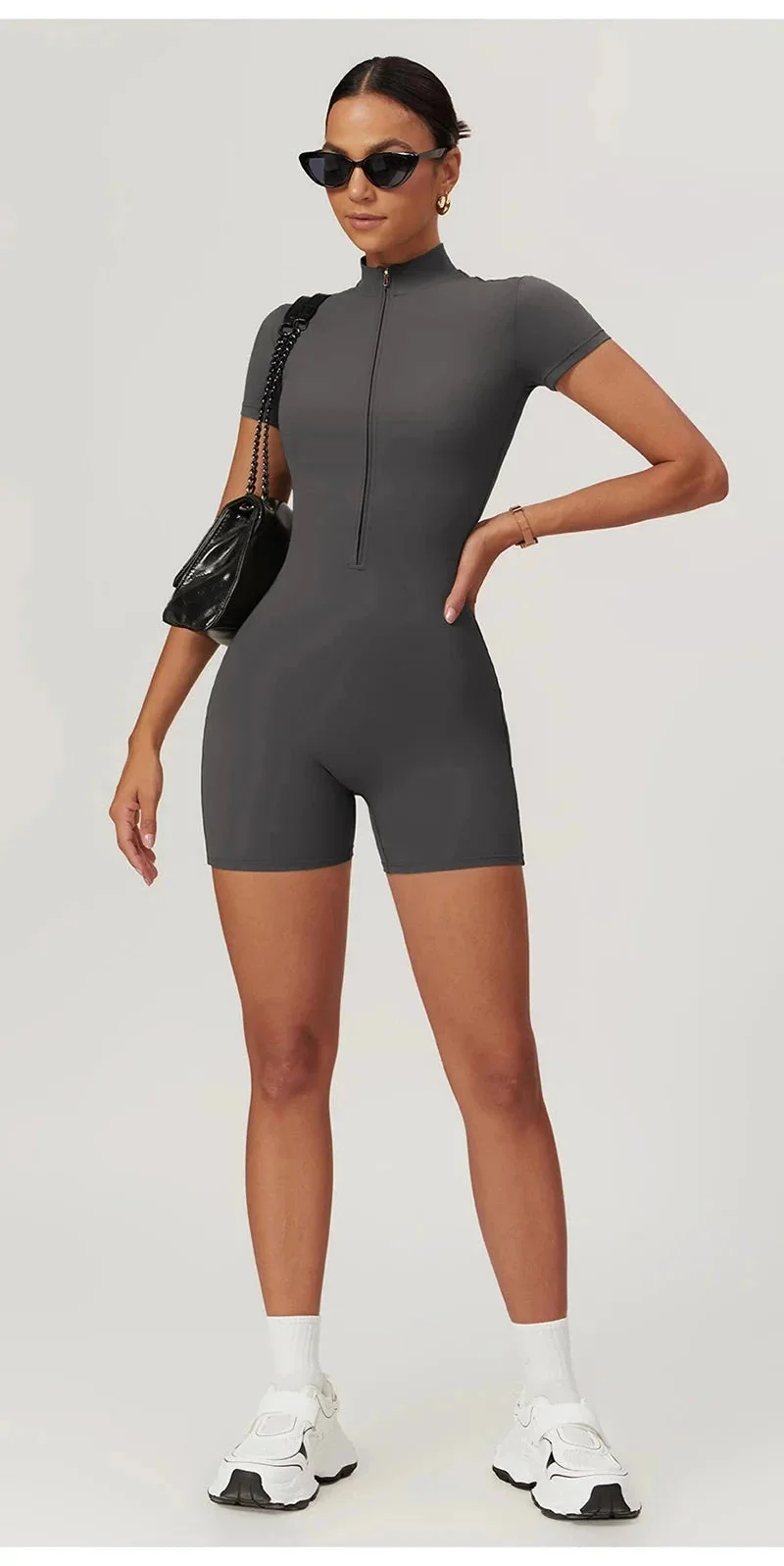 Unleash your style with the ZipChic Breathable Short Sleeve Jumpsuit perfect for daily wear, yoga, and fitness activities. Made from 78% Nylon and 22% Spandex, this jumpsuit combines comfort with functionality. Elevate your OOTD effortlessly with the secure worldwide shipping and 100% money-back guarantee. Whether youre into running, climbing, dancing, or hitting the gym, this jumpsuit blends style with performance for a flawless workout experience. Embrace the flexibility of the ZipChic Jumpsuit available in multiple trendy colors and sizes for a seamless fit. Join the fitness trend with ZipChic and enhance your activewear collection today!