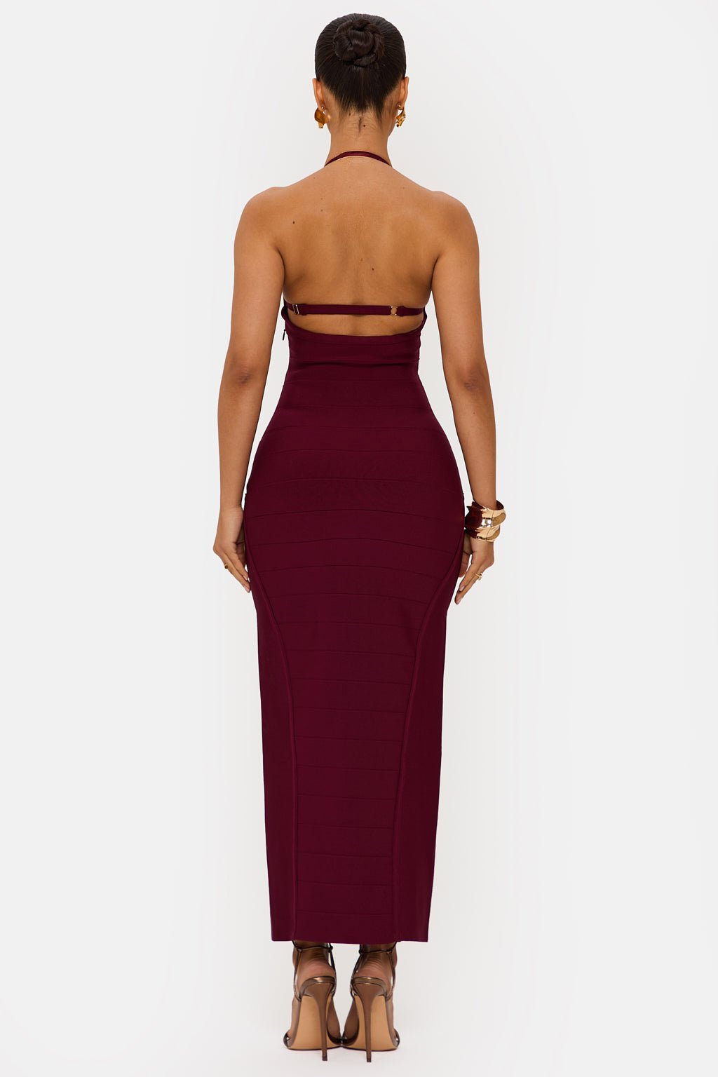 halter-neck bandage-dress midaxi cut-out under-bust adjustable-straps high-stretch body-contouring evening-dress party-dress women-dress stretch-fabric polyester-elastane midi-dress contour-dress
