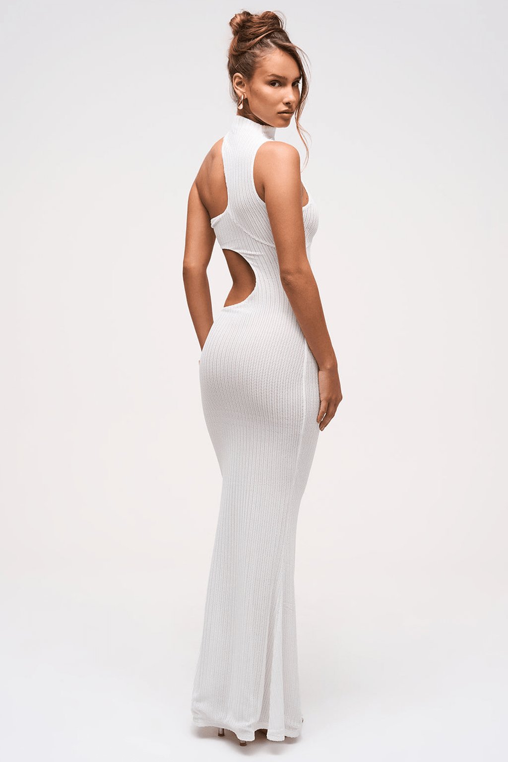 AZURE Textured Cut Out Maxi Dress in White - Bodycon Fit Mock Neck
