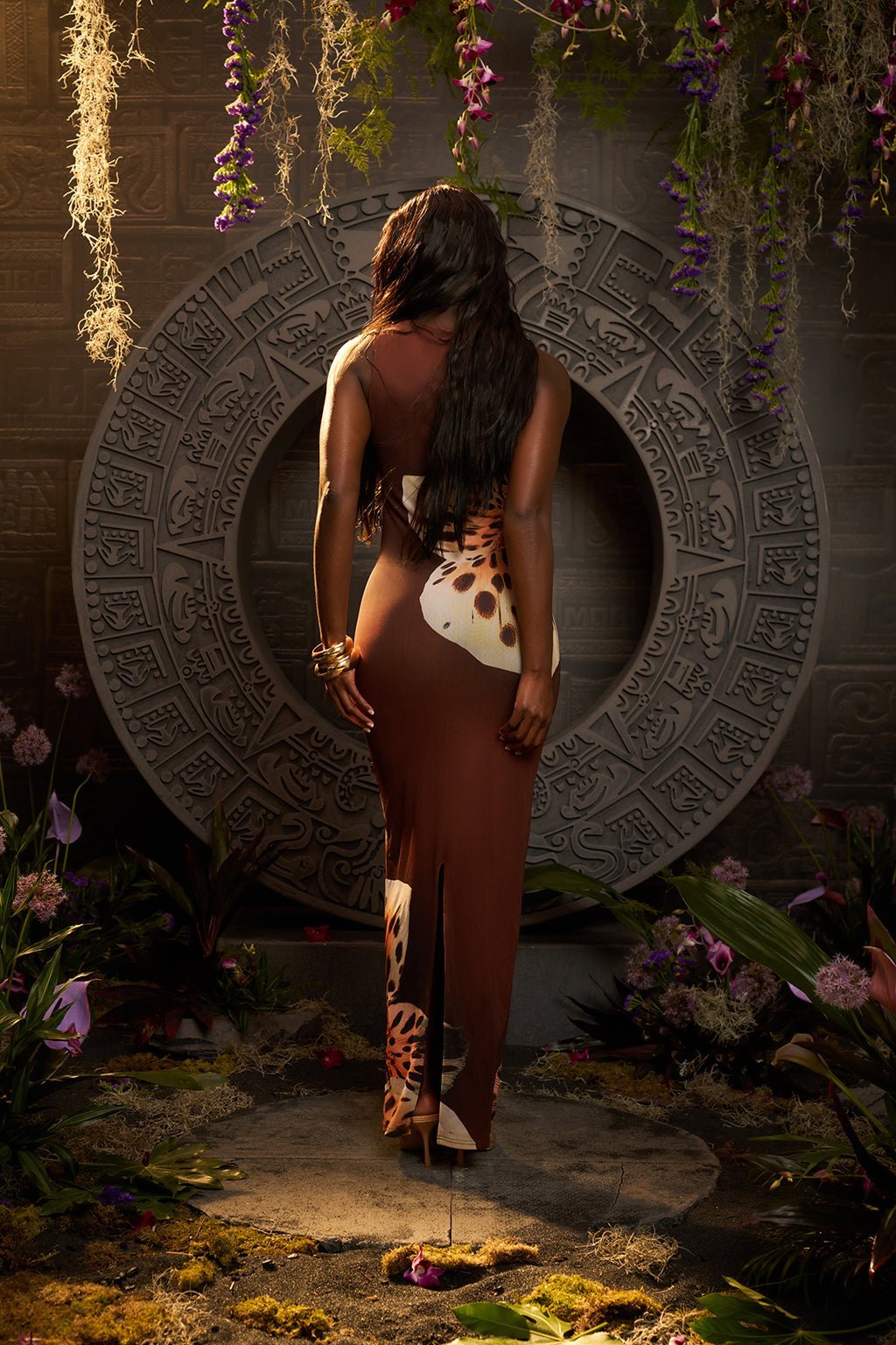 maxi-dress leopard-print orchid-print bodycon mesh-overlay stretch-fabric slash-neckline back-split bra-friendly uk-size-8 women-dress evening-dress print-dress midi-dress party-dress club-dress summer-dress exclusive-design