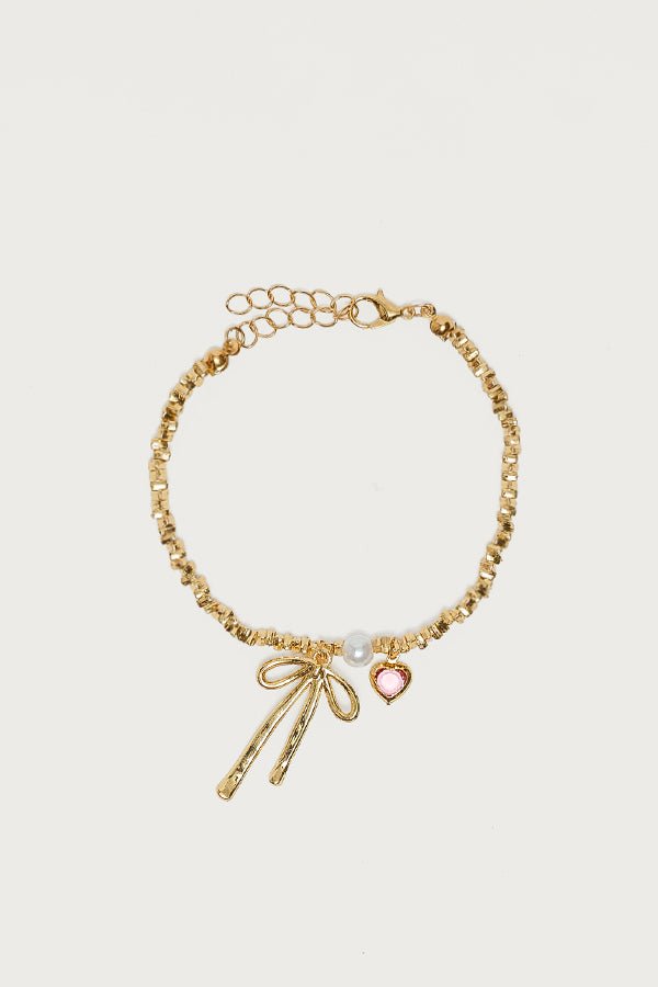 bracelet charm-bracelet bow-charm pearl-charm heart-charm gold-tone jewelry accessories womens-bracelet fashion-accessory dainty-bracelet layering-bracelet party-jewelry casual-bracelet
