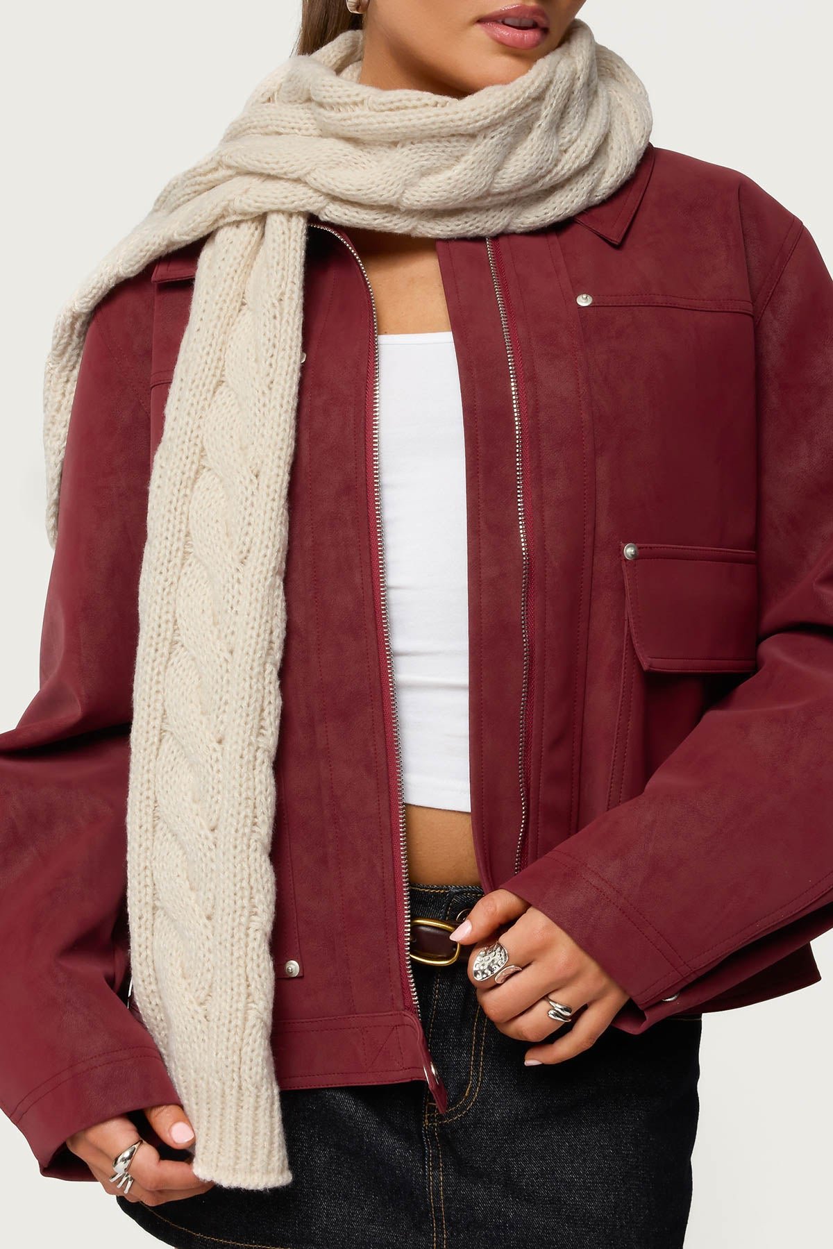 Cable Knit Scarf - Cotton Spandex Blend, 63.8" Length x 9.4" Width