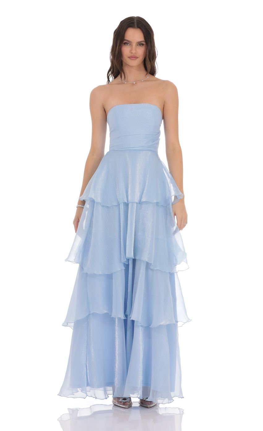 Corset Ruffle Strapless Maxi Dress in Sky Blue