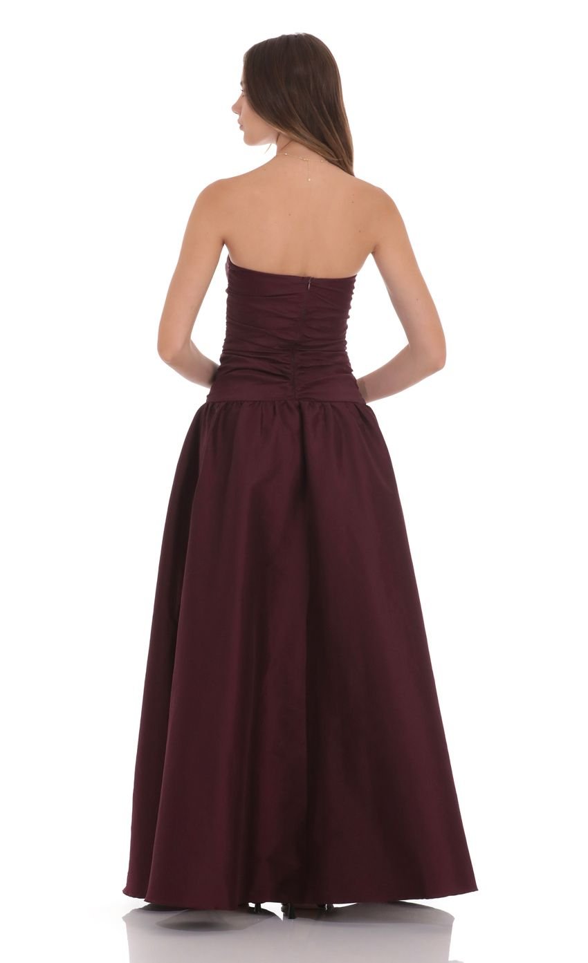 Cutout Drop Waist Strapless Maxi Dress in Wine