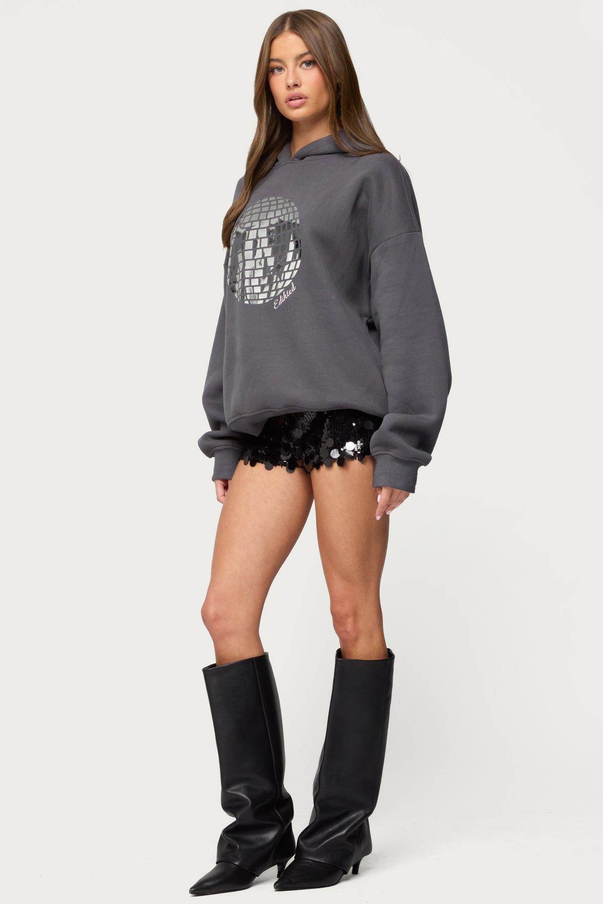 disco-ball hoodie graphic-print unisex cotton-polyester festival-wear casual streetwear party retro sweatshirt edikted oversized machine-washable y2k