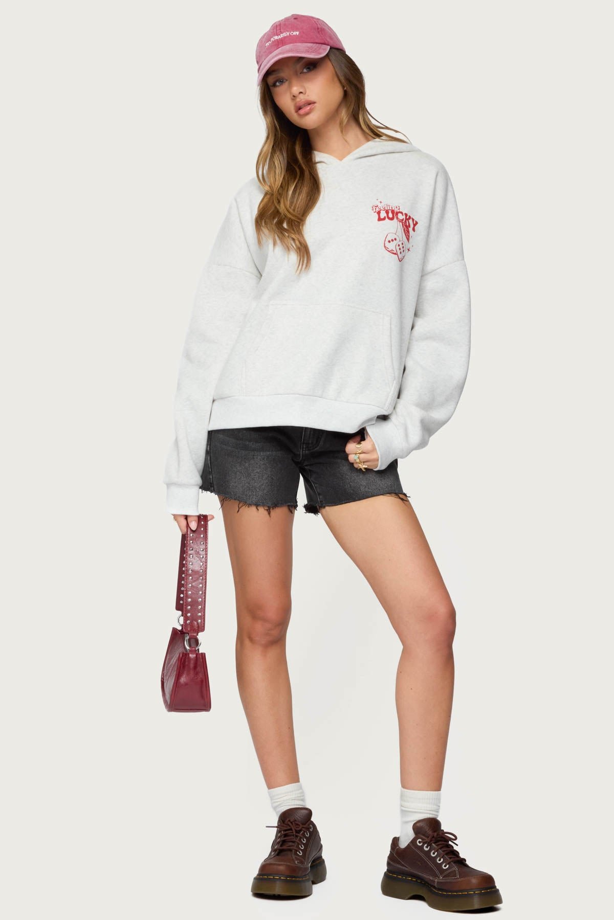 Feeling Lucky Oversized Hoodie with Dice Graphic Print Polyester Cotton Blend