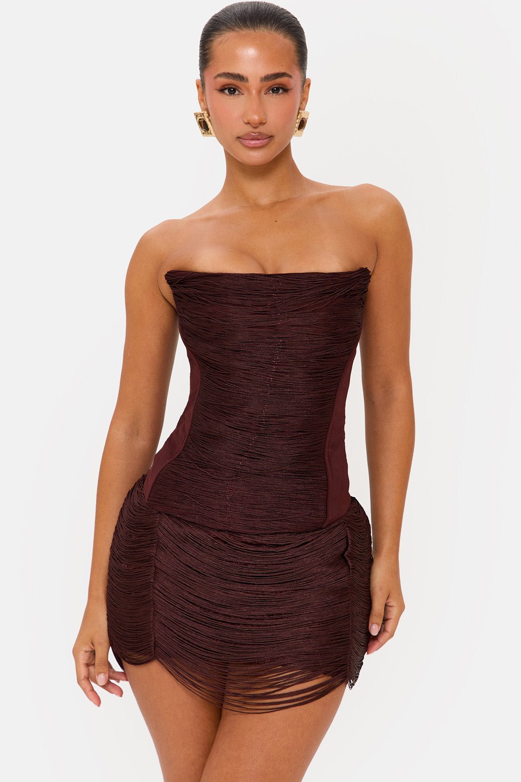 Elevate your wardrobe with the Fever fringe overlay mini skirt, featuring a draped fringe design over a stretchy lace underlay for a flirty, bohemian vibe. This true-to-size mini skirt includes a convenient centre back zip fastening and measures approximately 34cm from top hem to bottom edge (based on UK size 8). Crafted from a blend of 80% nylon, 10% polyester, and 10% elastane, it offers flexibility and comfort for nights out, parties, or casual styling. The lace underlay provides stretch while the fringe adds movement and texture. Hand wash only to maintain its delicate details. Perfect for pairing with heels or boots for a versatile look.