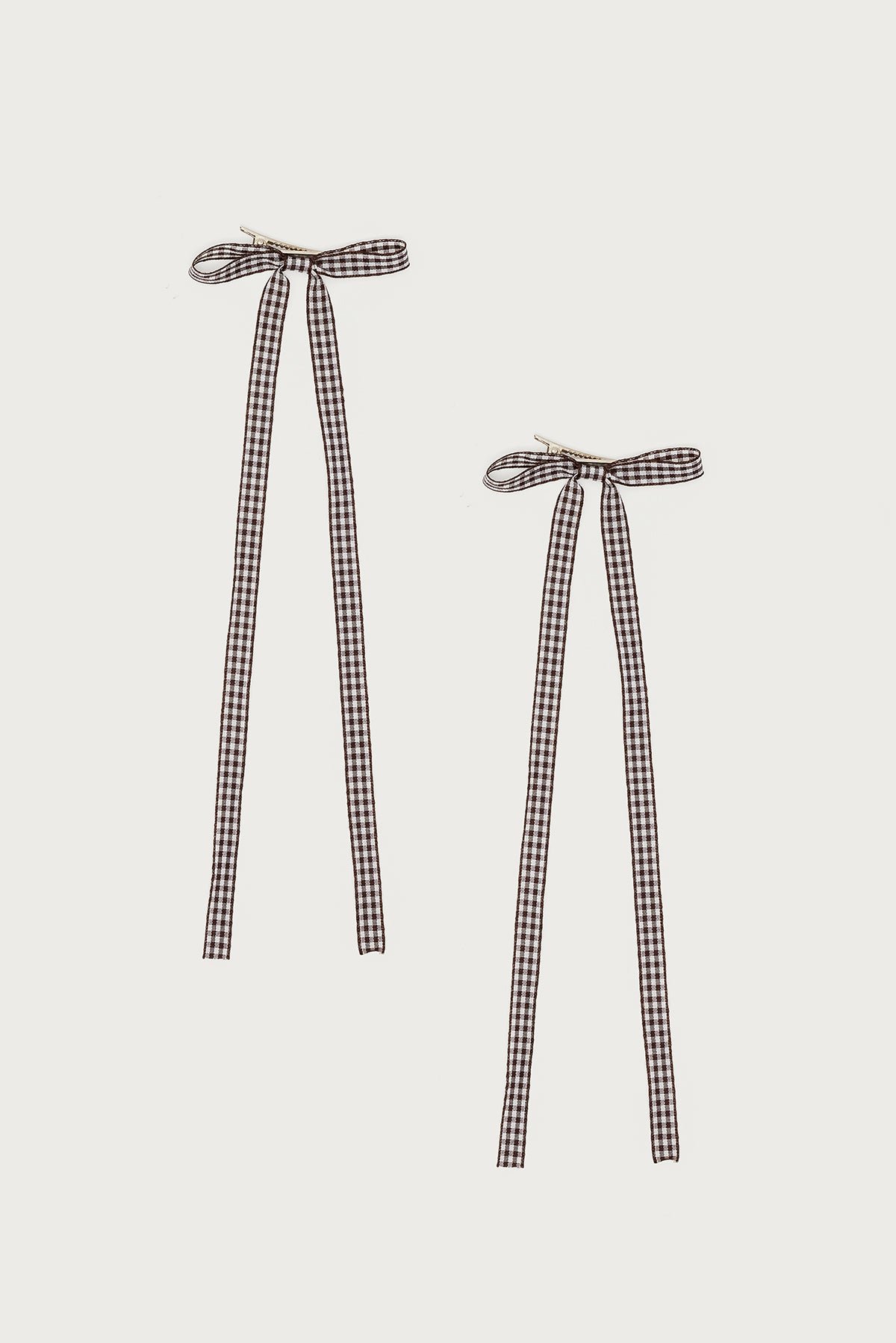 Gingham Bow Hair Clip Set of 2 Polyester 10.4 Inch Length