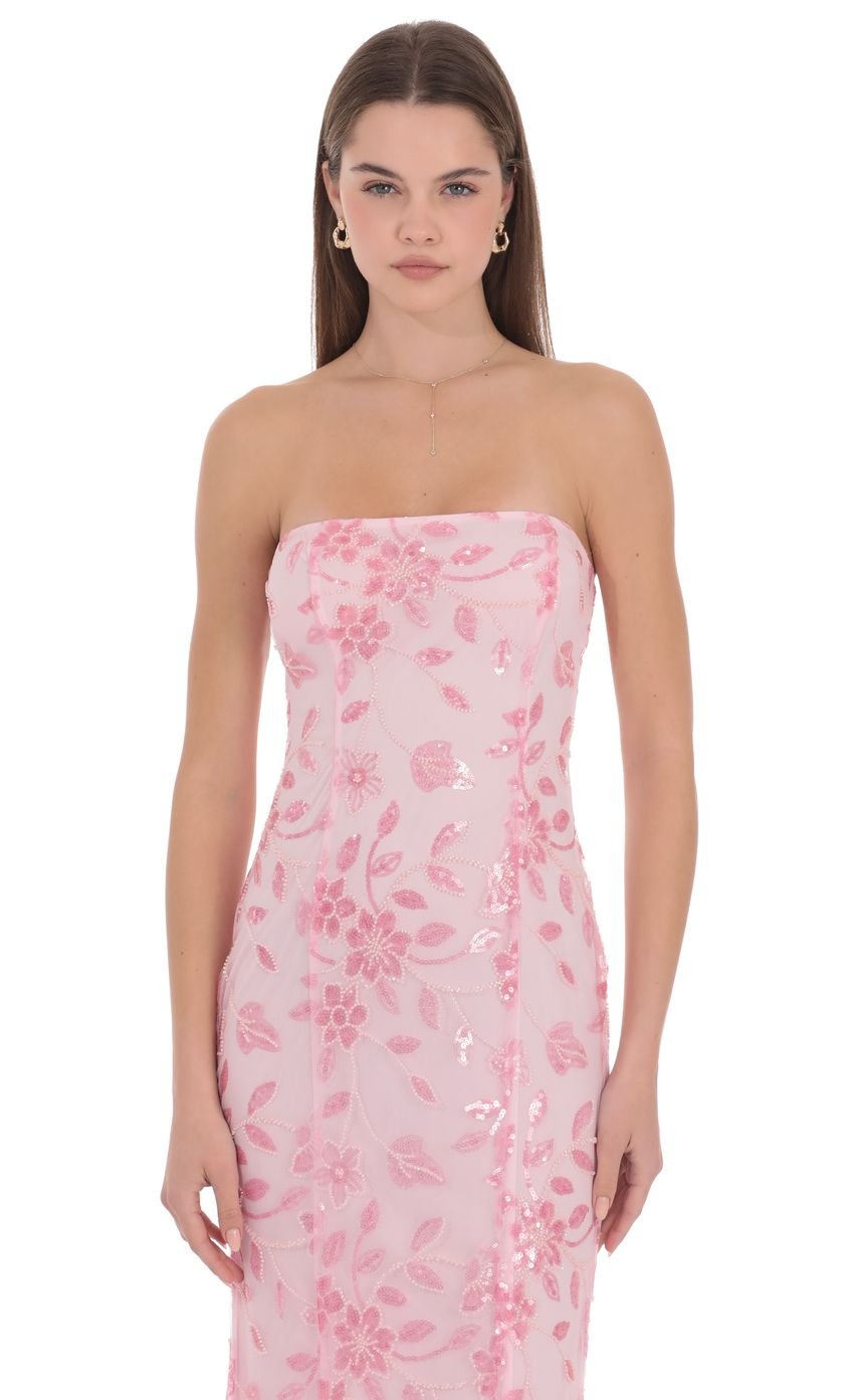 Strapless neckline with a sculpted, streamlined bodice