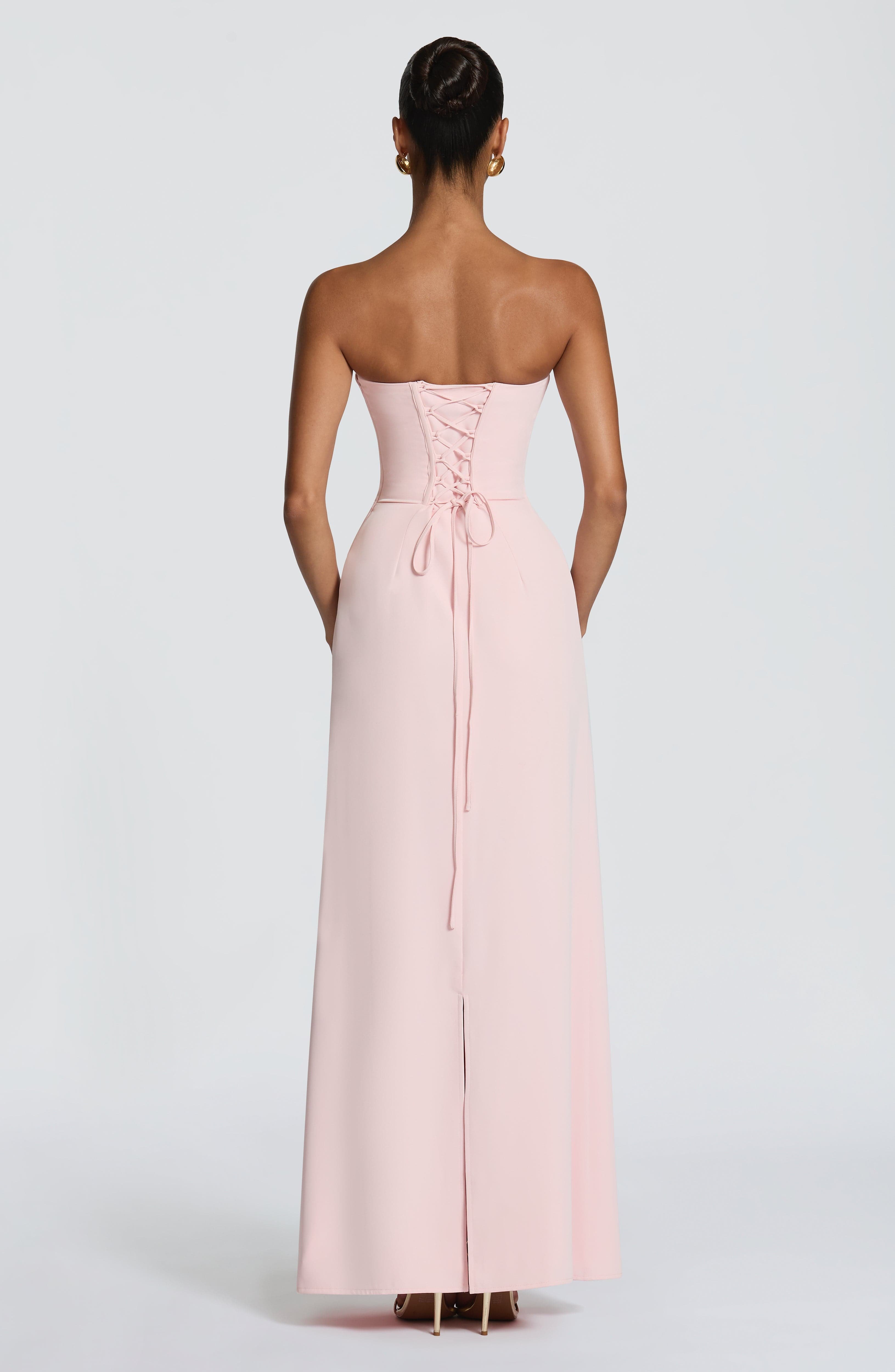 Irmina Blush Maxi Dress Strapless Draped Twill Corset Lace-Up Back
