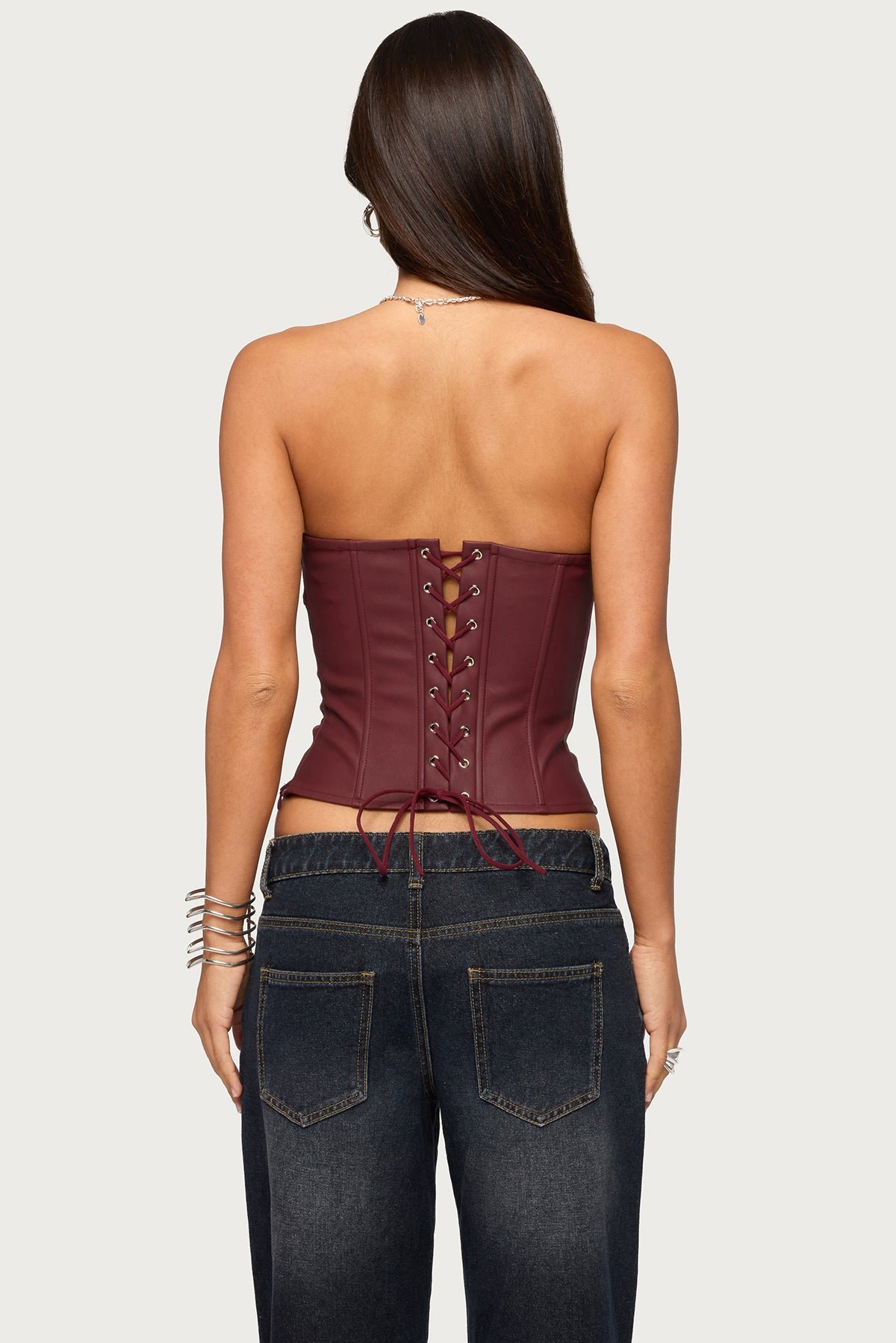 Izara Studded Faux Leather Corset - Strapless Sweetheart Neckline Boned Bodice