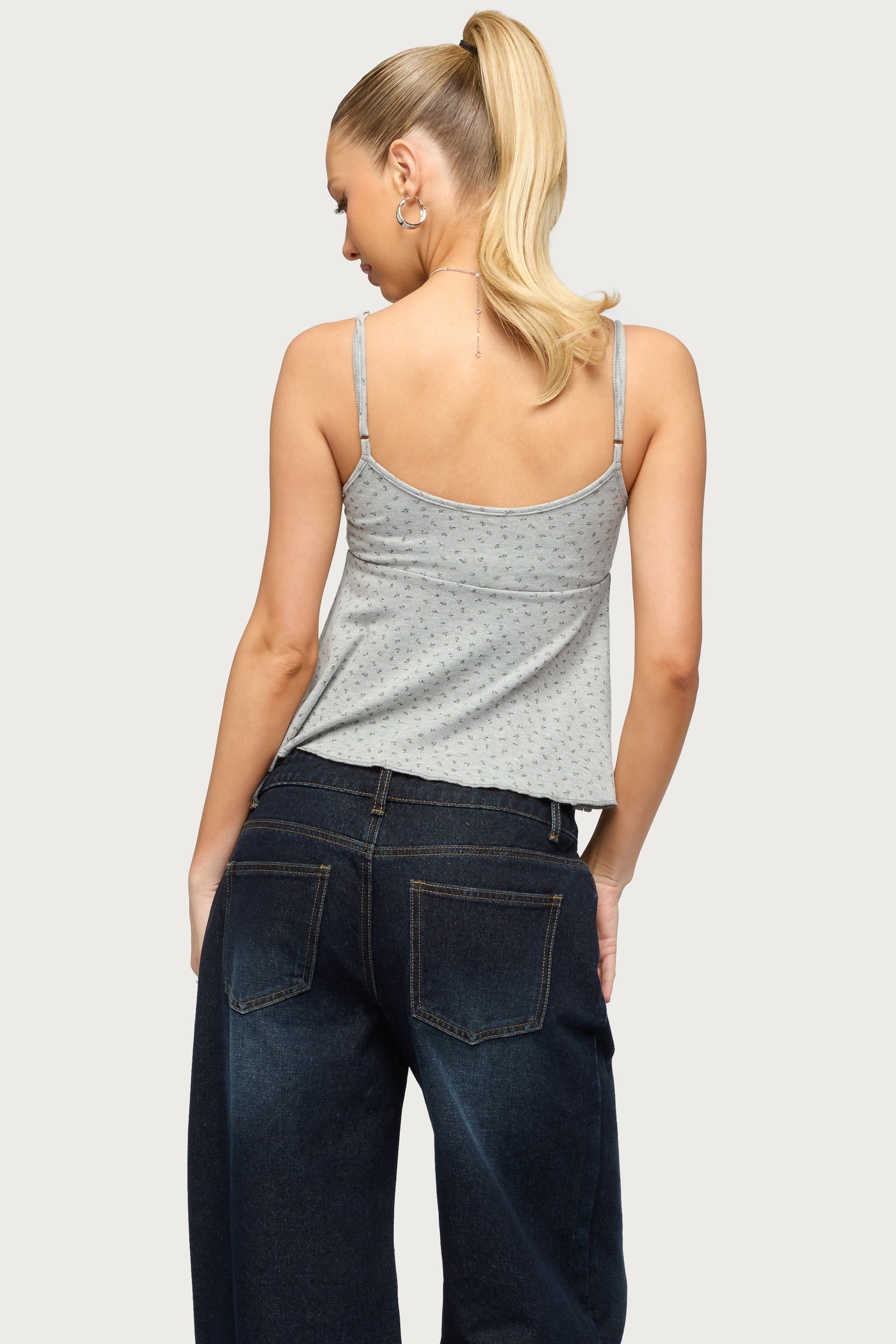 floral babydoll tank-top adjustable-straps rayon spandex womens summer casual vacation festival stretchy print soft breathable