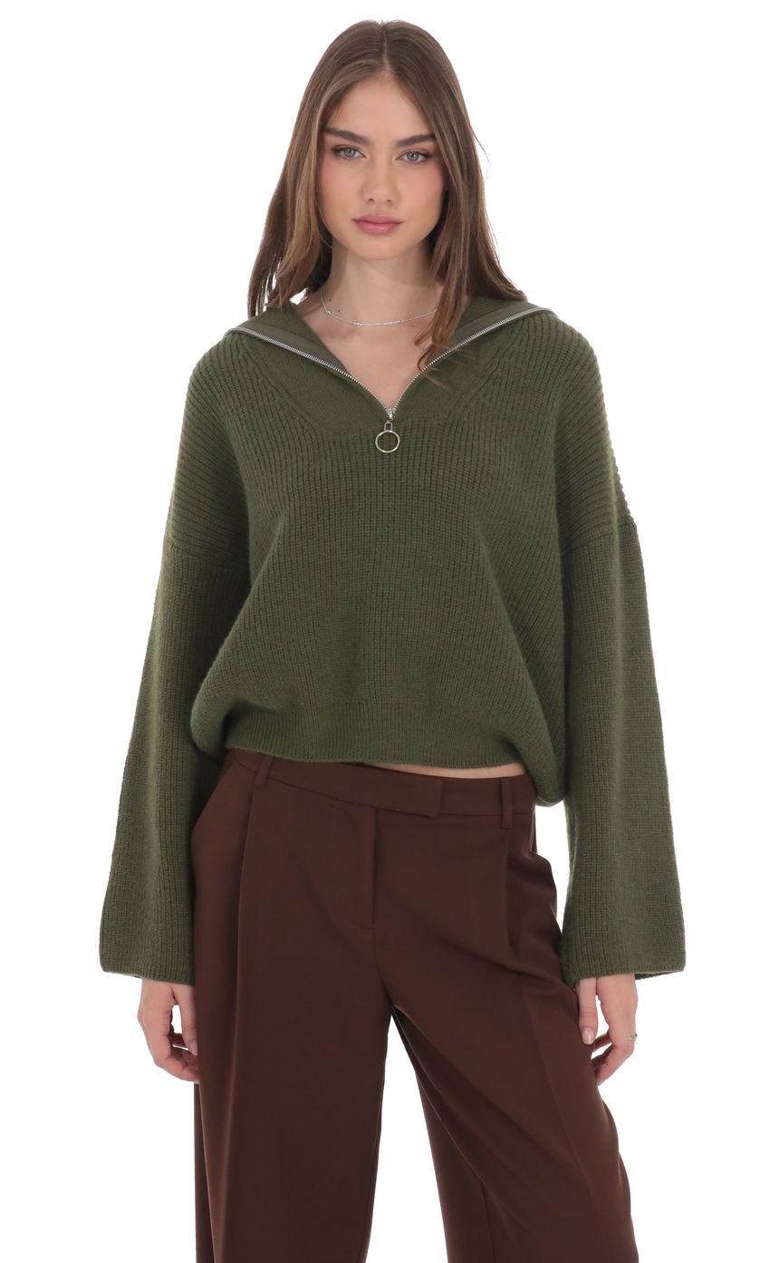 Knit Quarter-Zip Jumper in Green