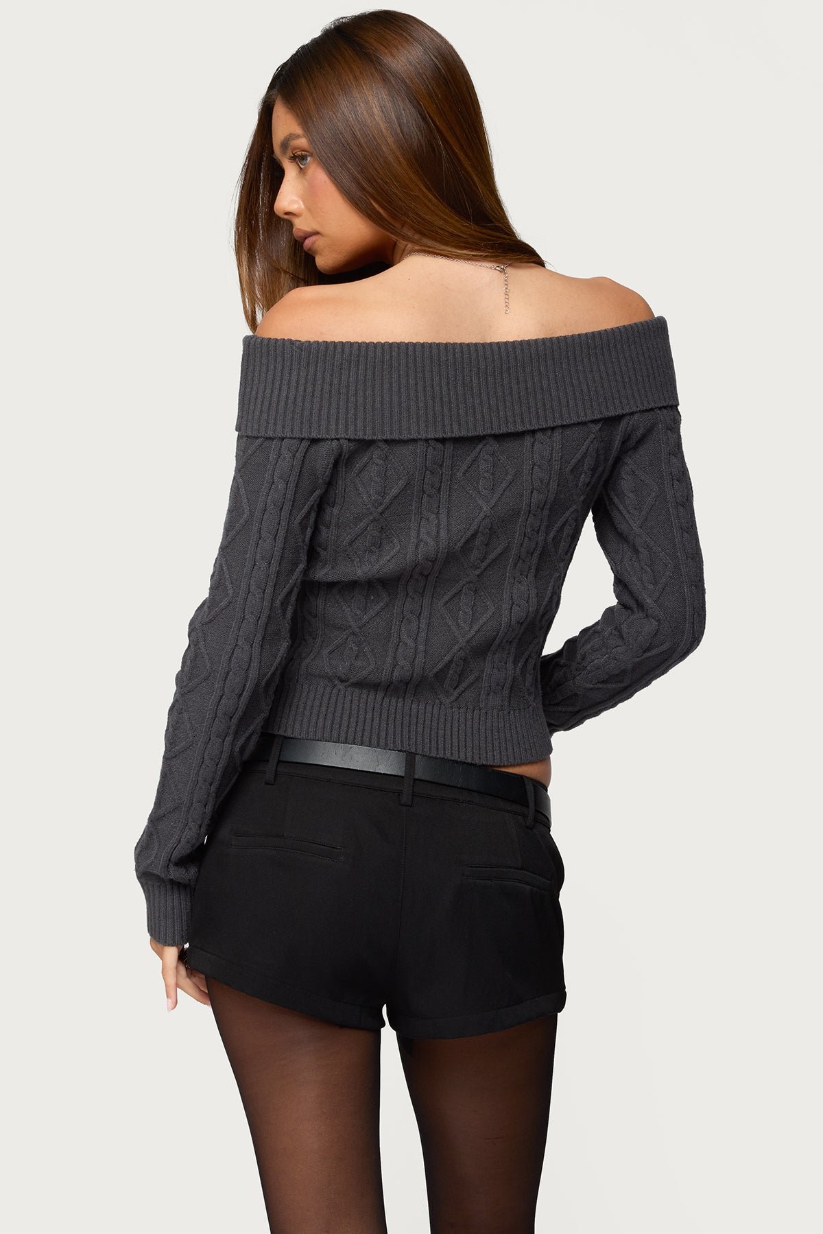 off-shoulder cable-knit acrylic size-s winter knitwear sweater tops casual cozy fall-fashion machine-washable