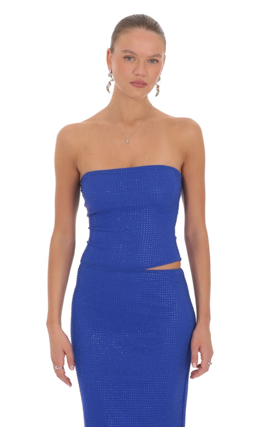 The Liora Rhinestone Maxi Dress is a sleek, strapless silhouette designed to contour the body with a smooth, elongating fit. Featuring subtle allover embellishment for a soft shimmer effect, this design is elevated by a modern cutout at the waist that adds dimension while maintaining a refined, streamlined shape. The column-style skirt enhances the elongated look, creating an effortless statement from every angle.