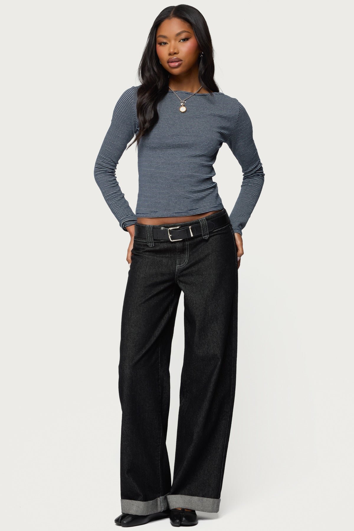 Loria Striped Boat Neck Long Sleeve Top - Cotton Spandex