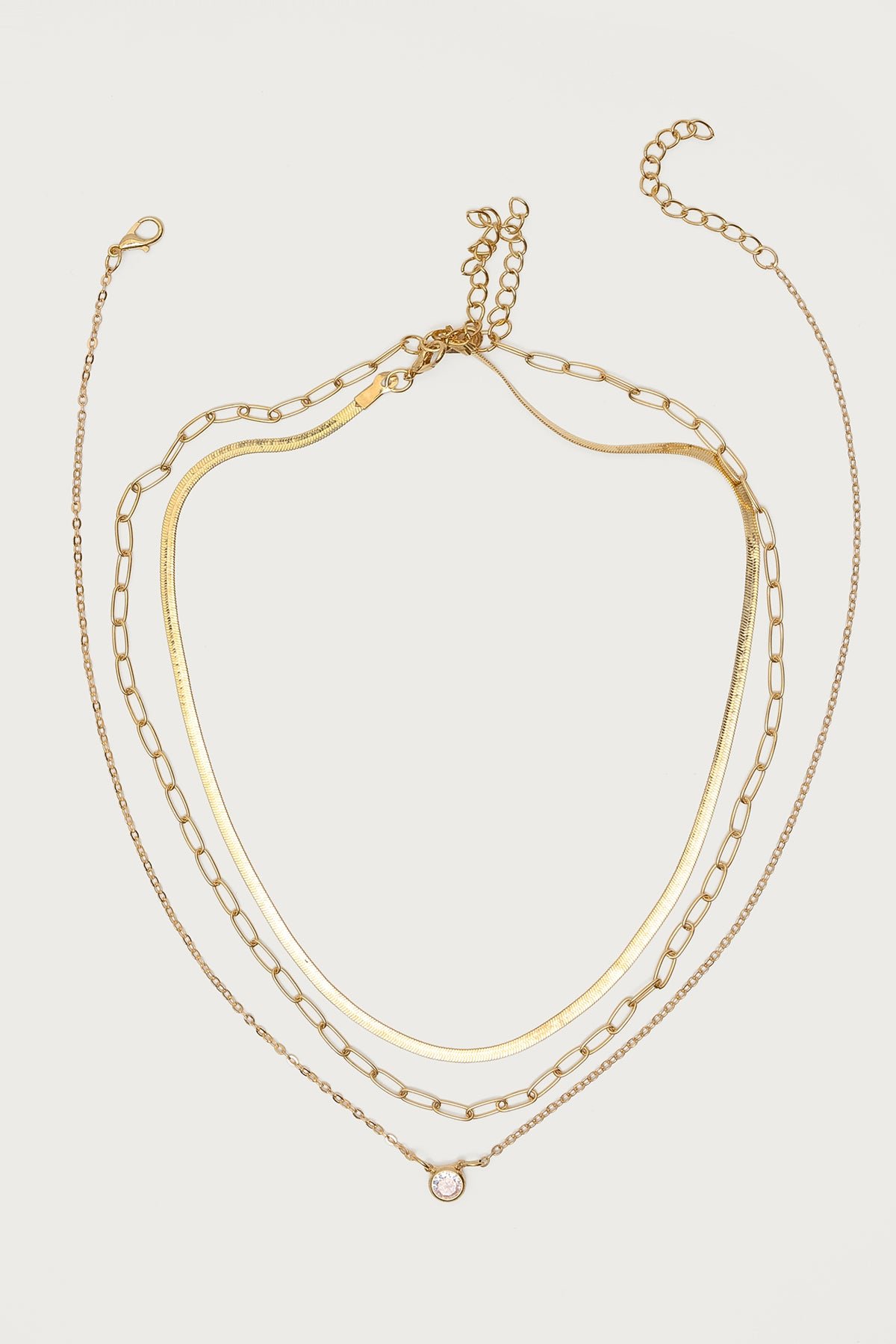 Mixed Chain Necklace Set with Pendant Detailing Gold Tone Metal 16.7-18.7in