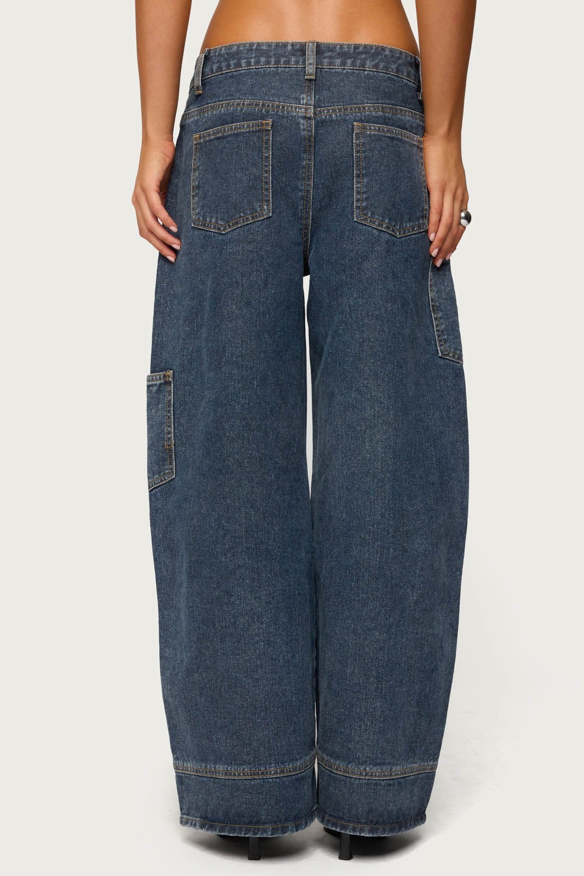 low-rise baggy-fit wide-cuff rigid-denim cotton side-pockets machine-washable casual denim streetwear festival vacation