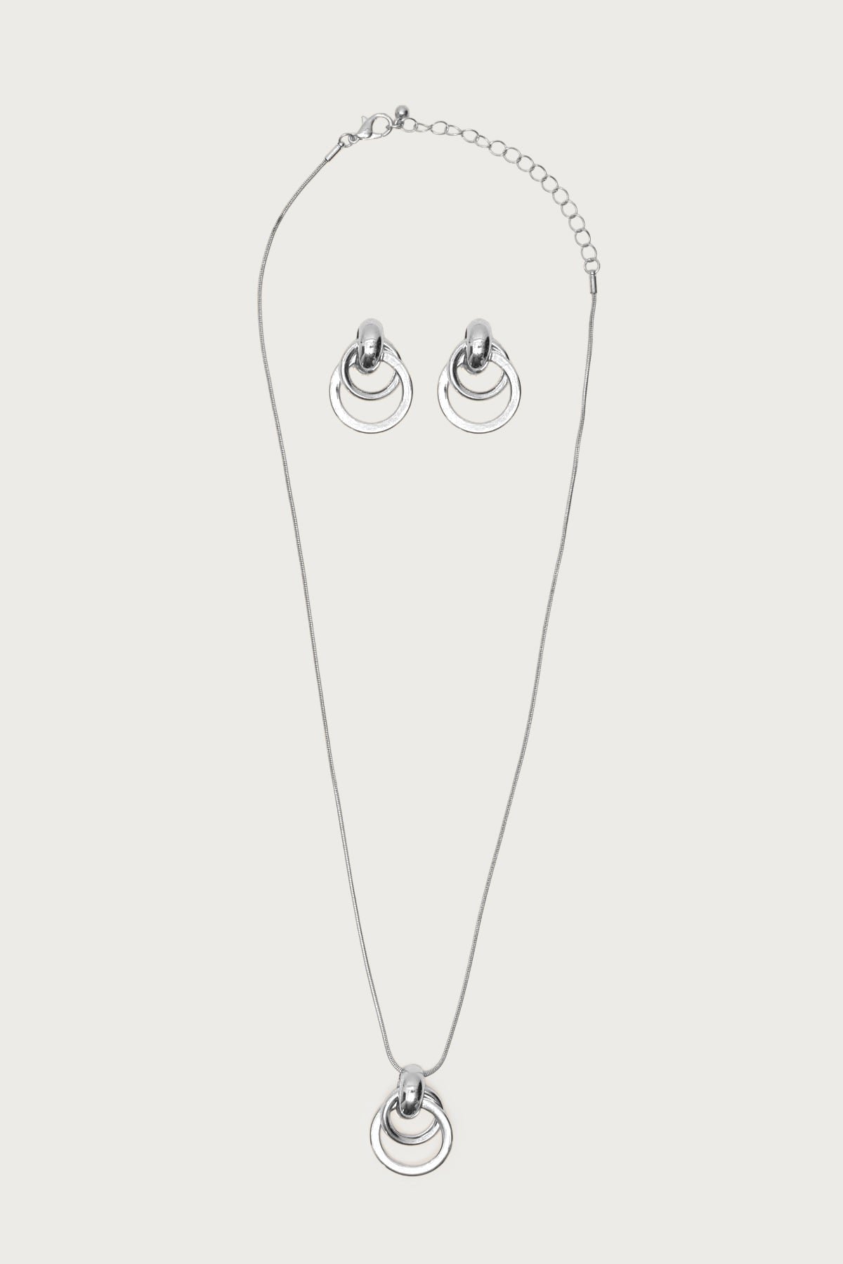 jewelry-set necklace earrings hoops silver-tone double-hoop drop-earrings matching-set everyday-jewelry party-accessories