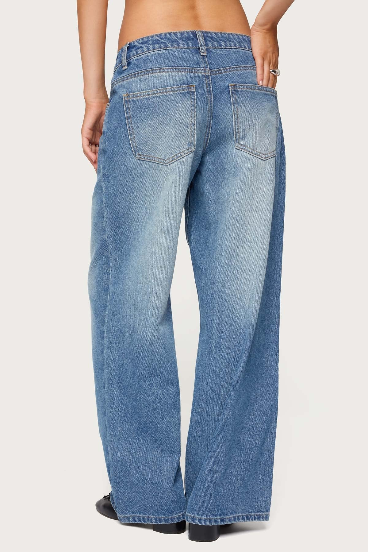 petite acid-wash low-rise baggy-fit denim cotton jeans rigid-denim petite-jeans womens-jeans casual-denim street-style