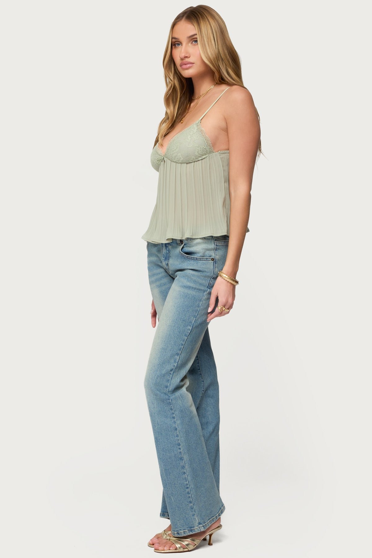Rhian Lacey Pleated Babydoll Top - Adjustable Straps, Lace Bust, Chiffon