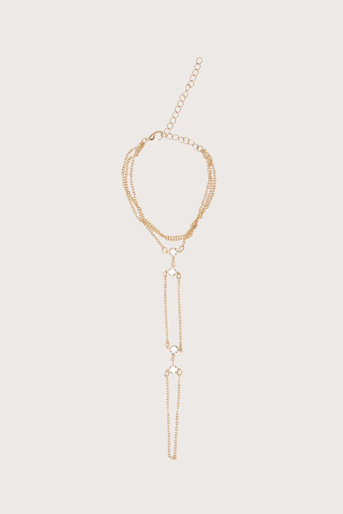 Rhinestone Layered Hand Chain Gold Tone Metal 9.8 Inch Length