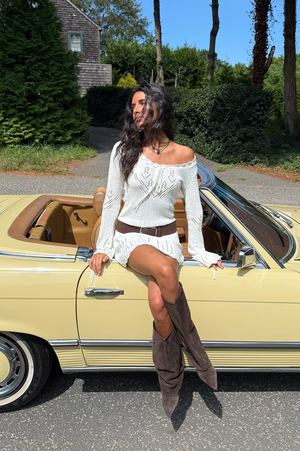 mini-dress pointelle-knit long-sleeves string-tie scalloped-trim acrylic-fabric spring-dress easter-dress casual-dress vacation-outfit