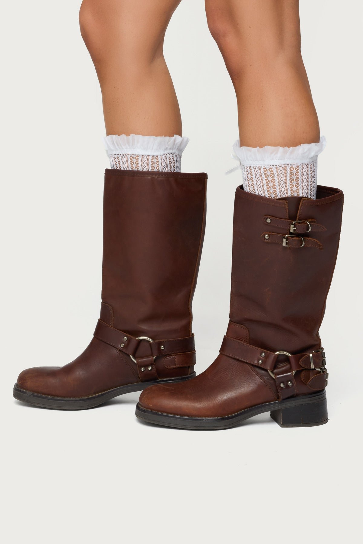 Elevate your style with these delicate sheer lace socks featuring a charming bow detail. Crafted from a premium blend of nylon and spandex, they offer a soft, stretchy fit that hugs comfortably without slipping. Measuring 14.2 inches in length, these socks add a touch of elegance to any outfit, perfect for pairing with heels, boots, or sneakers for a feminine flair. Ideal for everyday wear, special occasions, or layering under dresses and skirts. Easy care: machine wash at maximum 30°C, do not bleach, tumble dry low, iron at a maximum of 110°C, do not dry clean. Sheer lace design provides breathability and a subtle sexy vibe while maintaining durability.