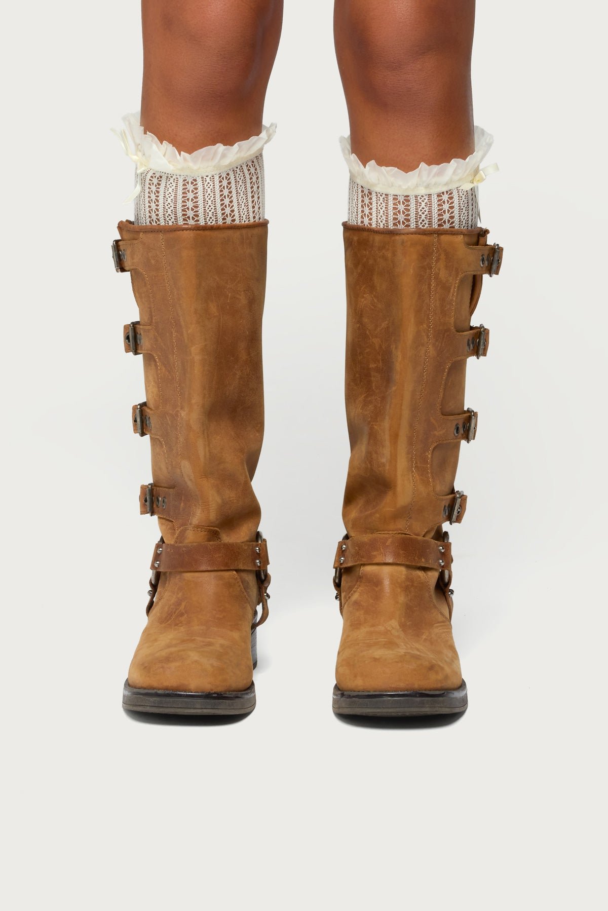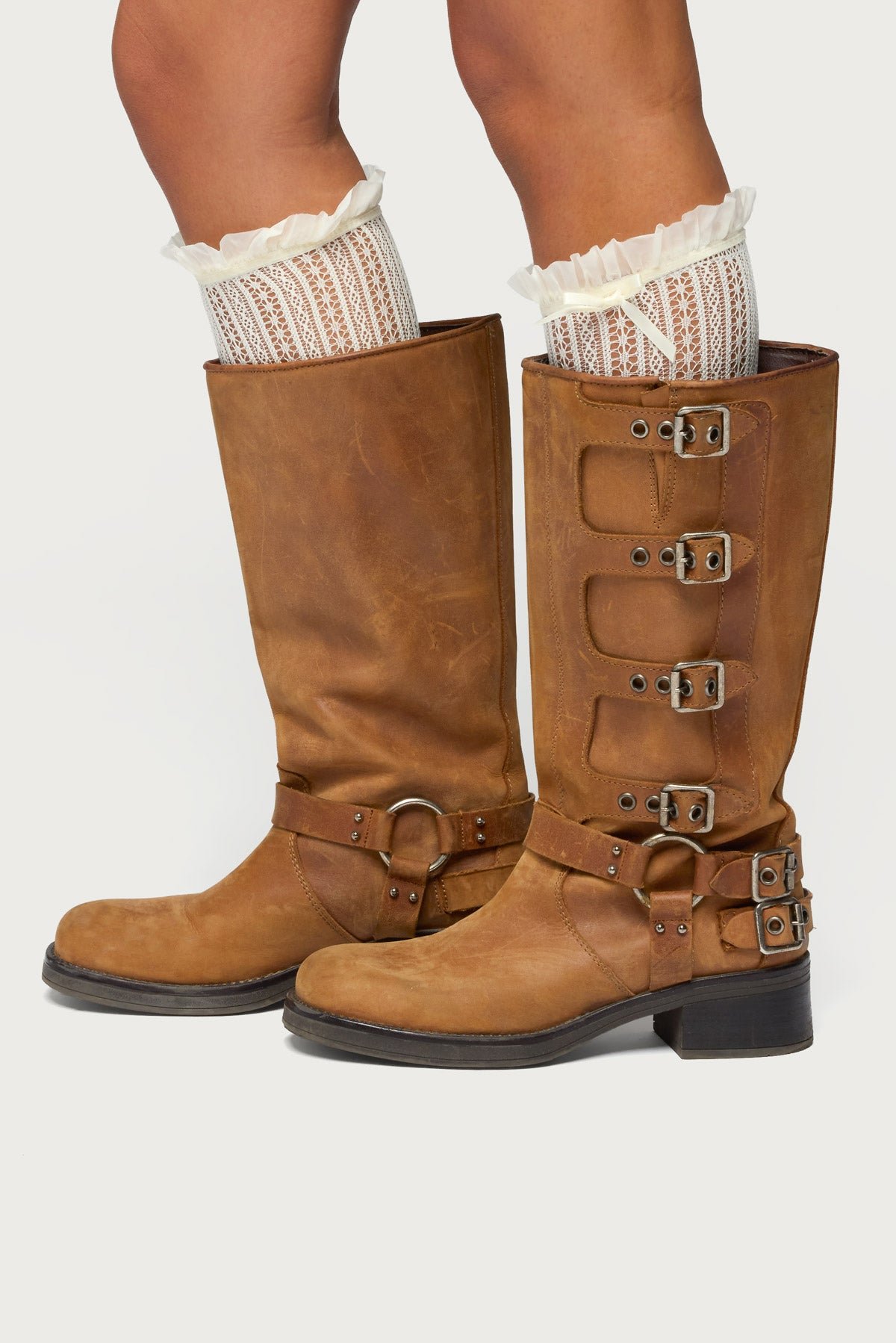 Sheer Lace Socks with Bow Detail - Nylon Spandex