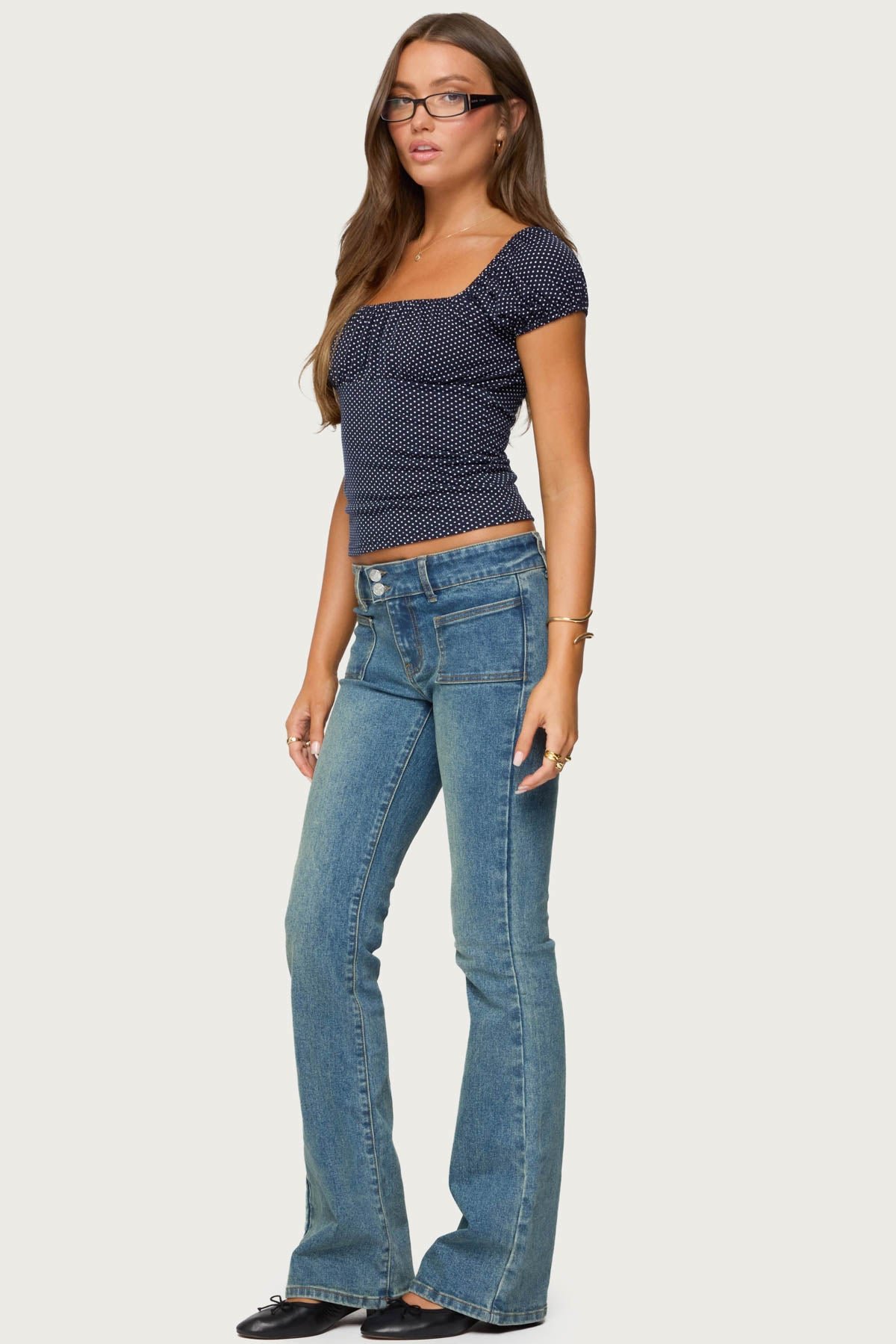The Stefania Polka Dot Top is a stylish women's blouse featuring a flattering square neckline, short puff sleeves, and ruched bust for a feminine silhouette. Underbust stitching adds definition, while the playful polka dot print brings a fun, retro vibe. Made from a comfortable polyester and spandex blend, this top offers stretch and ease of movement. Perfect for casual outings, office wear, date nights, or layering under jackets. Model wears size S and is 5'8" tall. Care instructions: Machine wash at maximum 30°C, do not bleach, tumble dry low, iron at a maximum of 110°C, do not dry clean. Elevate your wardrobe with this versatile polka dot top that pairs effortlessly with jeans, skirts, or trousers.