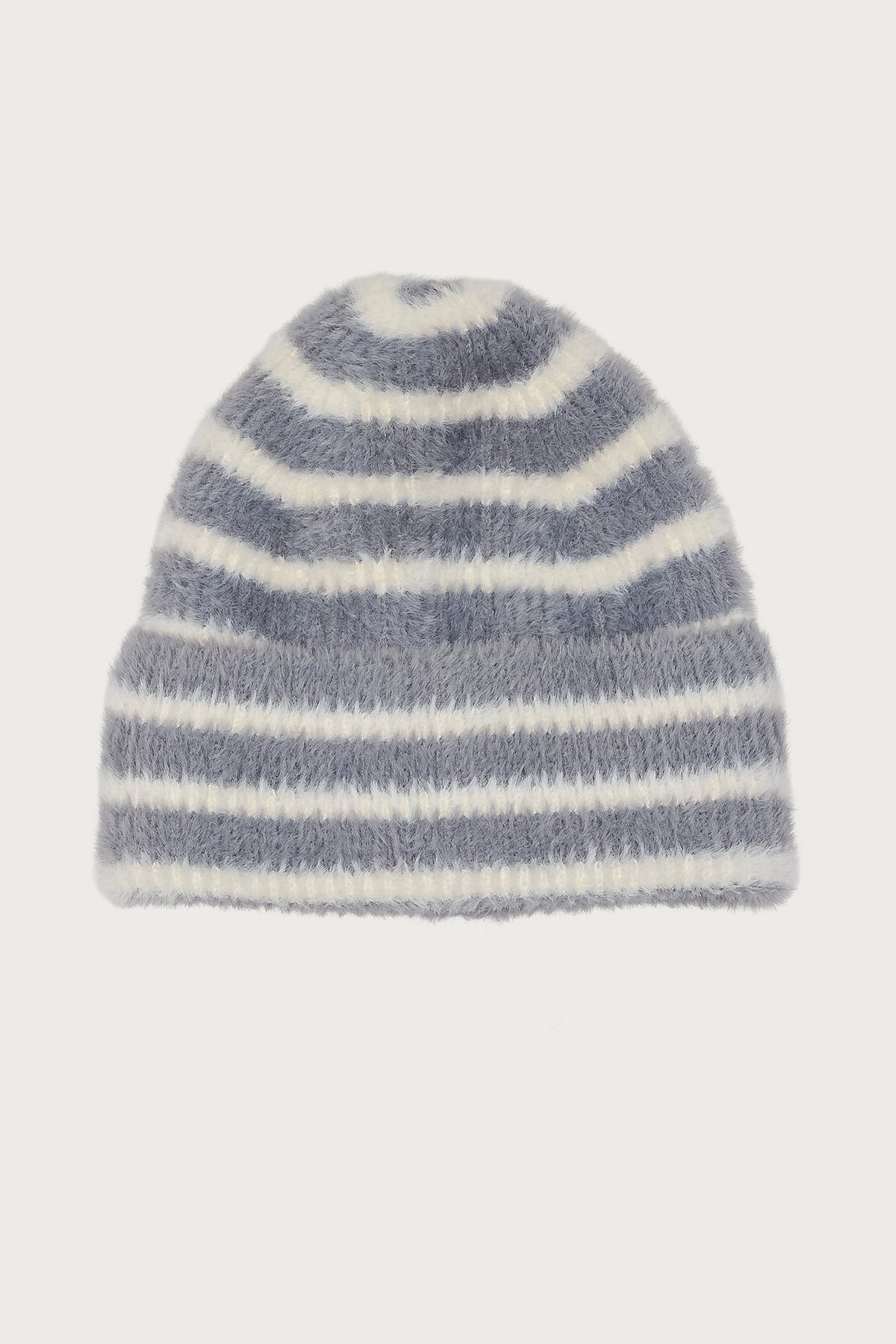 Striped Fuzzy Knit Beanie - Polyester Hat, Height 12.6in Length 9in