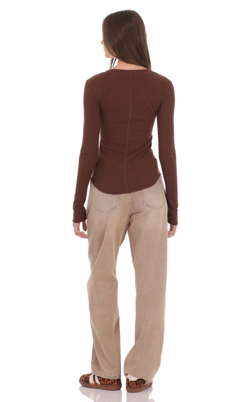Textured Ribbed Button Top in Brown