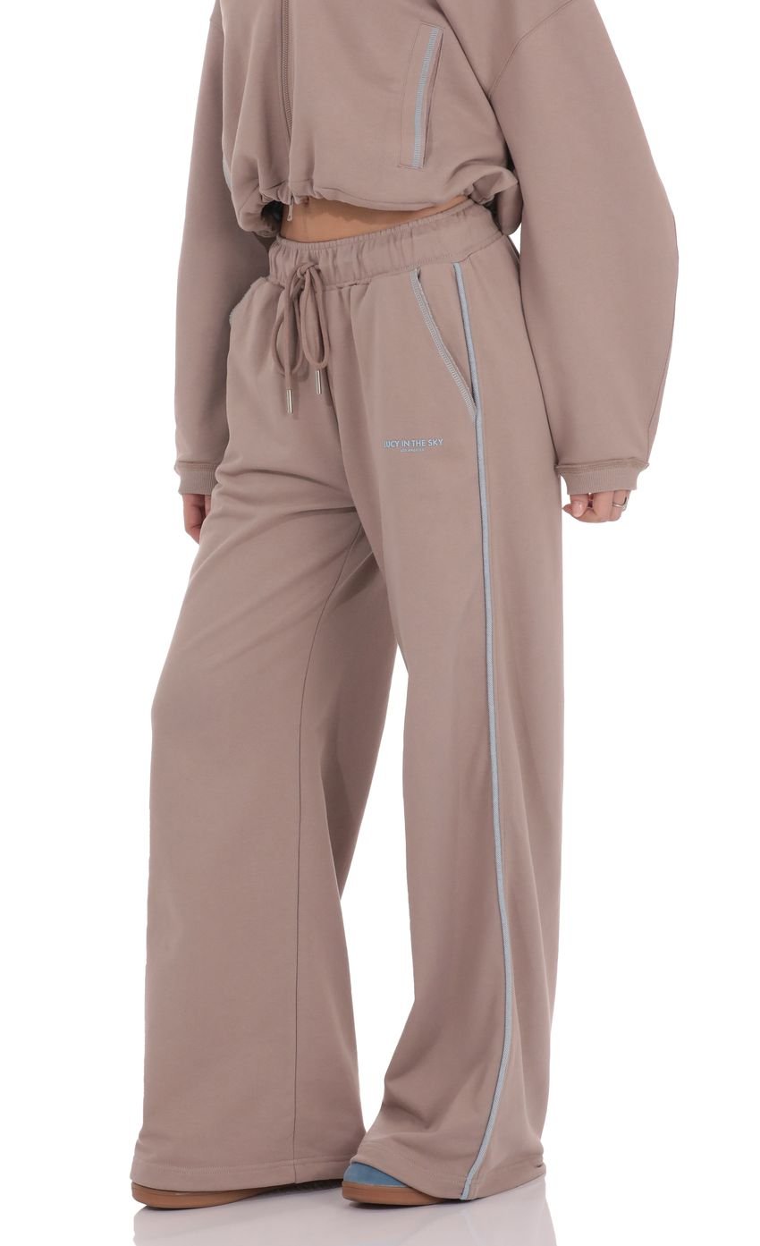 Two-Toned Cinchable Sweatpants Pants in Taupe