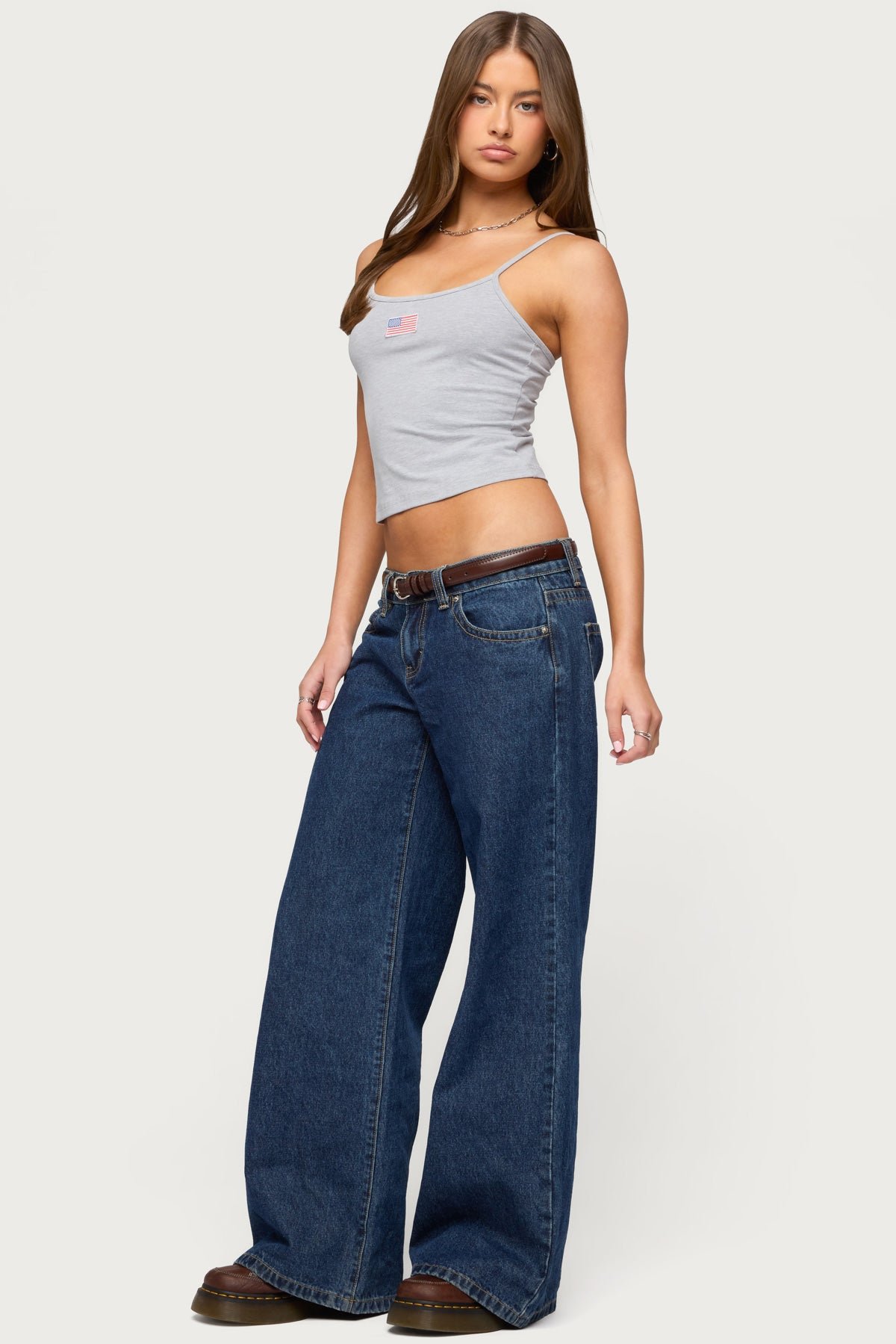 Comfortable USA tank top perfect for loungewear or casual outings. Features adjustable straps for a customizable fit and an embroidered USA patch for patriotic style. Made from a soft cotton-spandex blend for stretch and breathability. Model wears size S and is 5'7" tall. Ideal for everyday lounging, summer layering, or relaxed vacation looks. Care instructions: Machine wash at maximum 30°C, do not bleach, tumble dry low, iron at a maximum of 110°C, do not dry clean.