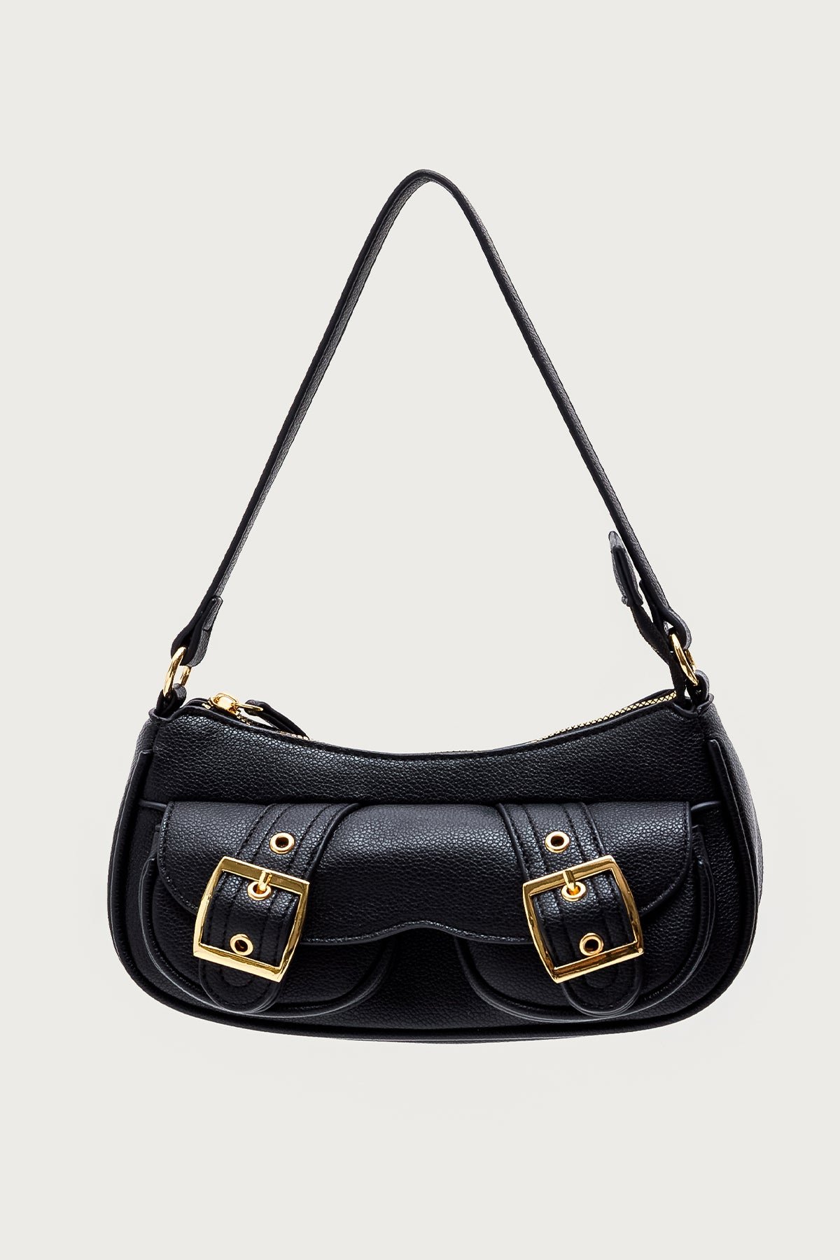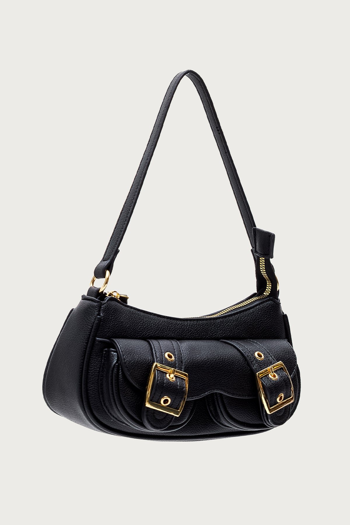 faux-leather buckle-bag zip-closure polyurethane handbag crossbody accessories black-bag compact-bag everyday-bag